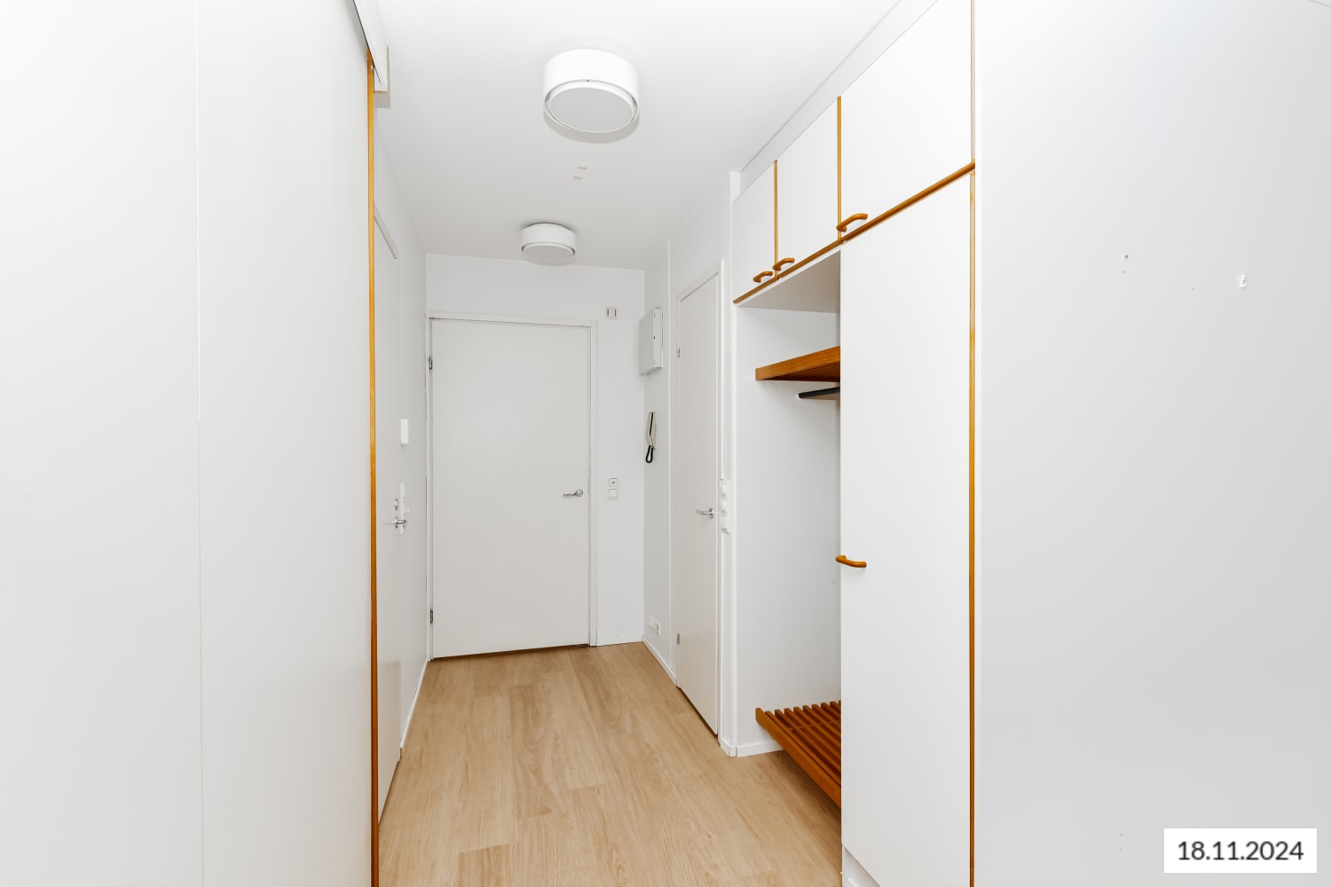 Valoisa ja fiksupohjainen yksiö odottelee uutta asukastaan hyvällä paikalla, arvokkaassa kivitalossa. Asunnon ikkunoista avautuu mukavan avara näkymä etelään yli pihan. Pohjaratkaisussa sisustuksen jäsentämistä helpottavaa alkovi ja keittokomeron viereen mahtuu pieni ruokapöytä.