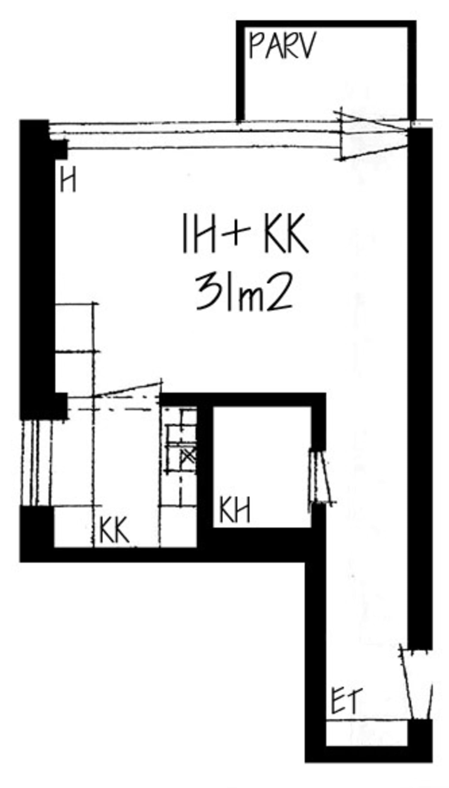Pidetyllä asuinalueella sijaitsevan ylimmän kerroksen yksiön valttina on valoisa ja tyylikäs pohjaratkaisu. 60-luvun henkeä parhaimmillaan edustaa asuinhuoneen levyinen ikkuna, josta avautuu esteetön näkymä länteen rinteen yli Ståhlbergintien ja -kujan risteykseen.