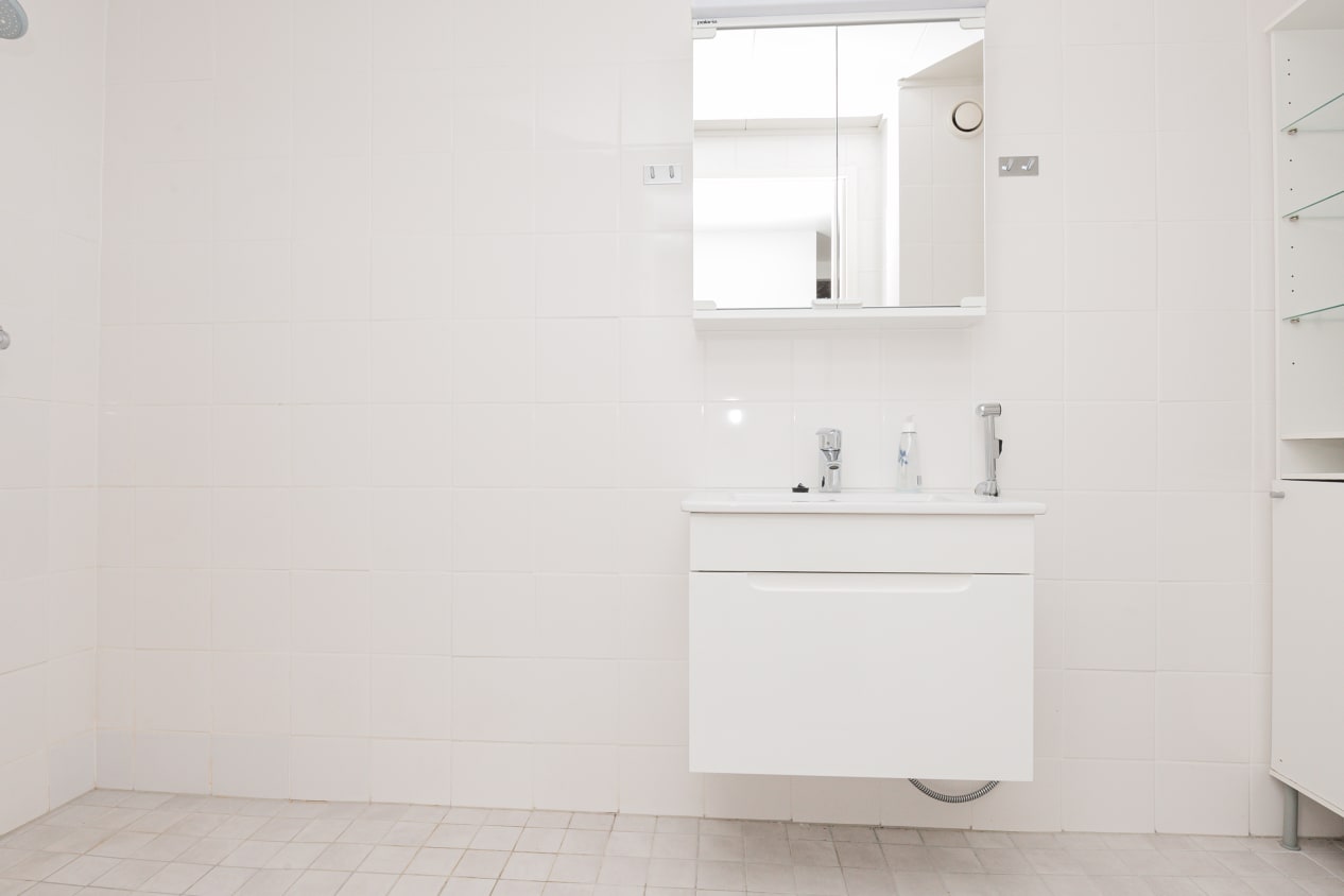 Keittiöstä löytyy tilaa astianpesukoneellesi ja jääkaappi kuuluu varustukseen. Kaakeloidussa kylpyhuoneessa on kätevä pyykkikaappi ja tilaa pesukoneelle.