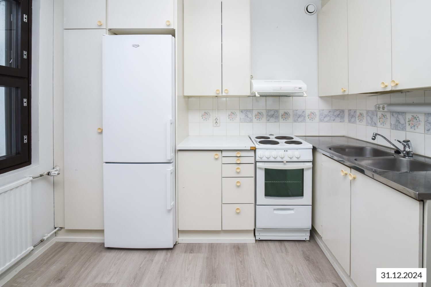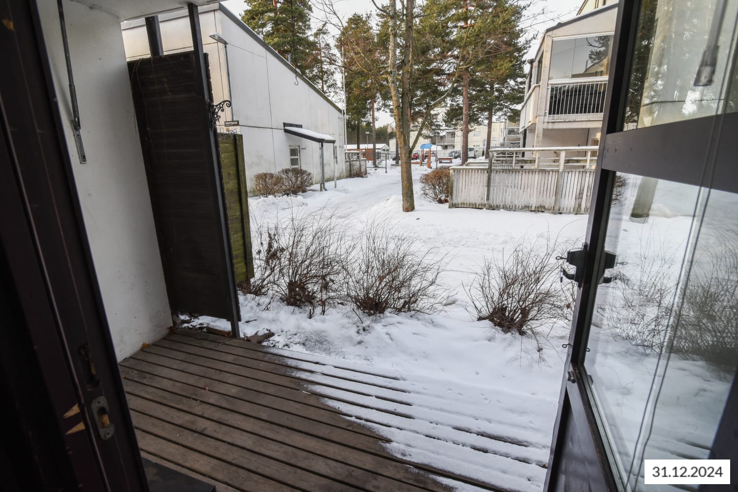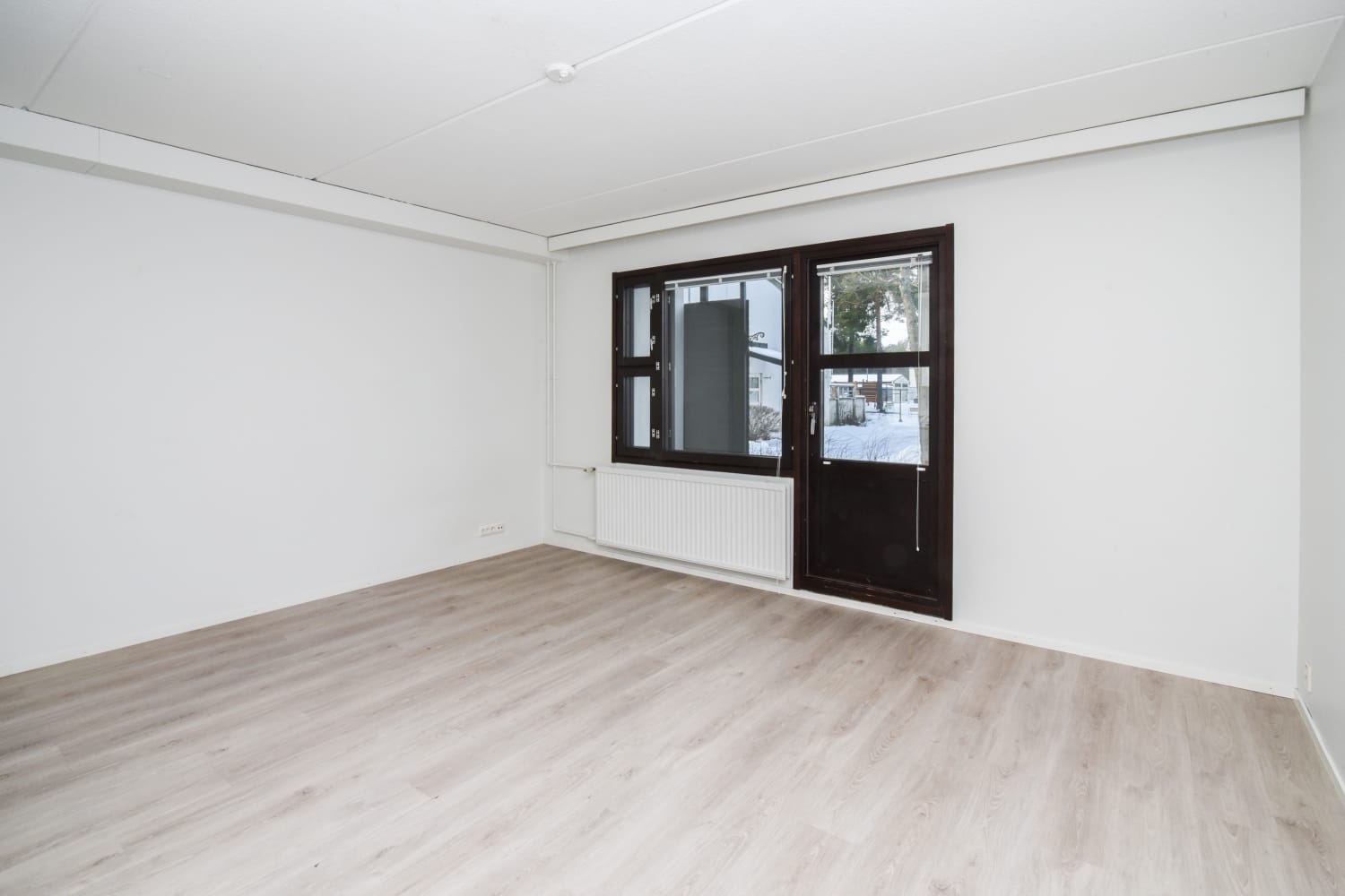 Viiden matalan kerrostalon muodostama pihapiiri on suojaisa ja viihtyisä. Tässä ensimmäisen kerroksen tilavassa yksiössä ihastuttaa oma terassi ja piha. Avokeittiö yhdistyy olohuoneen kanssa, muodostaen käytännöllisen oleskelutilan. Eteisessä on vaaleita, korkeita kaapistoja ja keittiön kaapistot on vaniljan sävyisiä. Lattiat on siistiä tammilaminaattia ja kylpyhuoneen seinät on laatoitettu. Kylpyhuoneessa on tilavaraus pyykinpesukoneelle.
