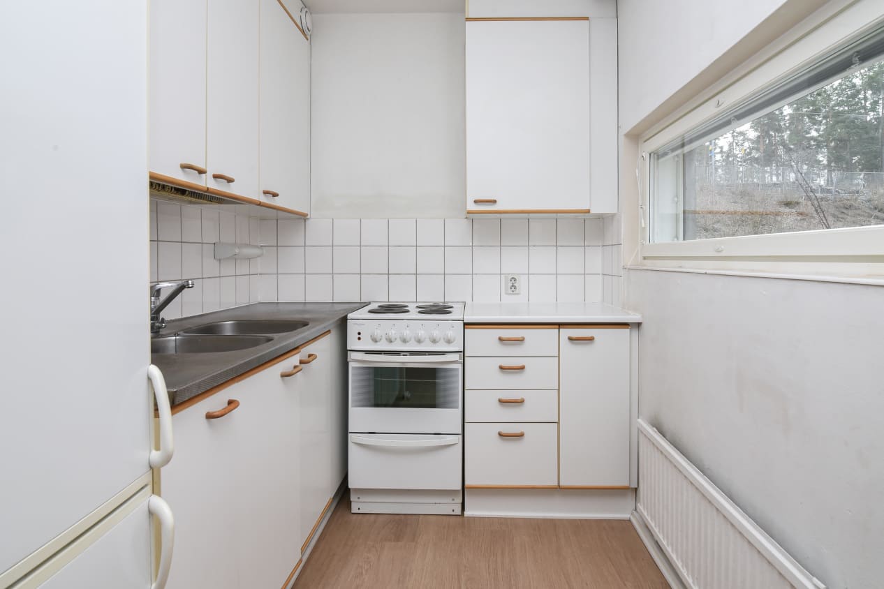 Kodikas kaksio on lähellä luontoa. Olohuoneesta avautuu parveke, josta voit seurata sisäpihan tapahtumia. Eteisessä on tilava vaatehuone ja komeroita.
