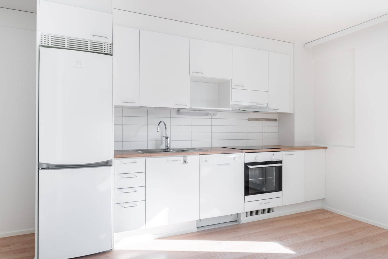Keittiössä on valmiina astianpesukone, induktioliesi ja jää-pakastinkaappi. Kylpyhuoneessa on liitännät pyykinpesukoneelle, joten pyykinpesu hoituu kätevästi kotona.