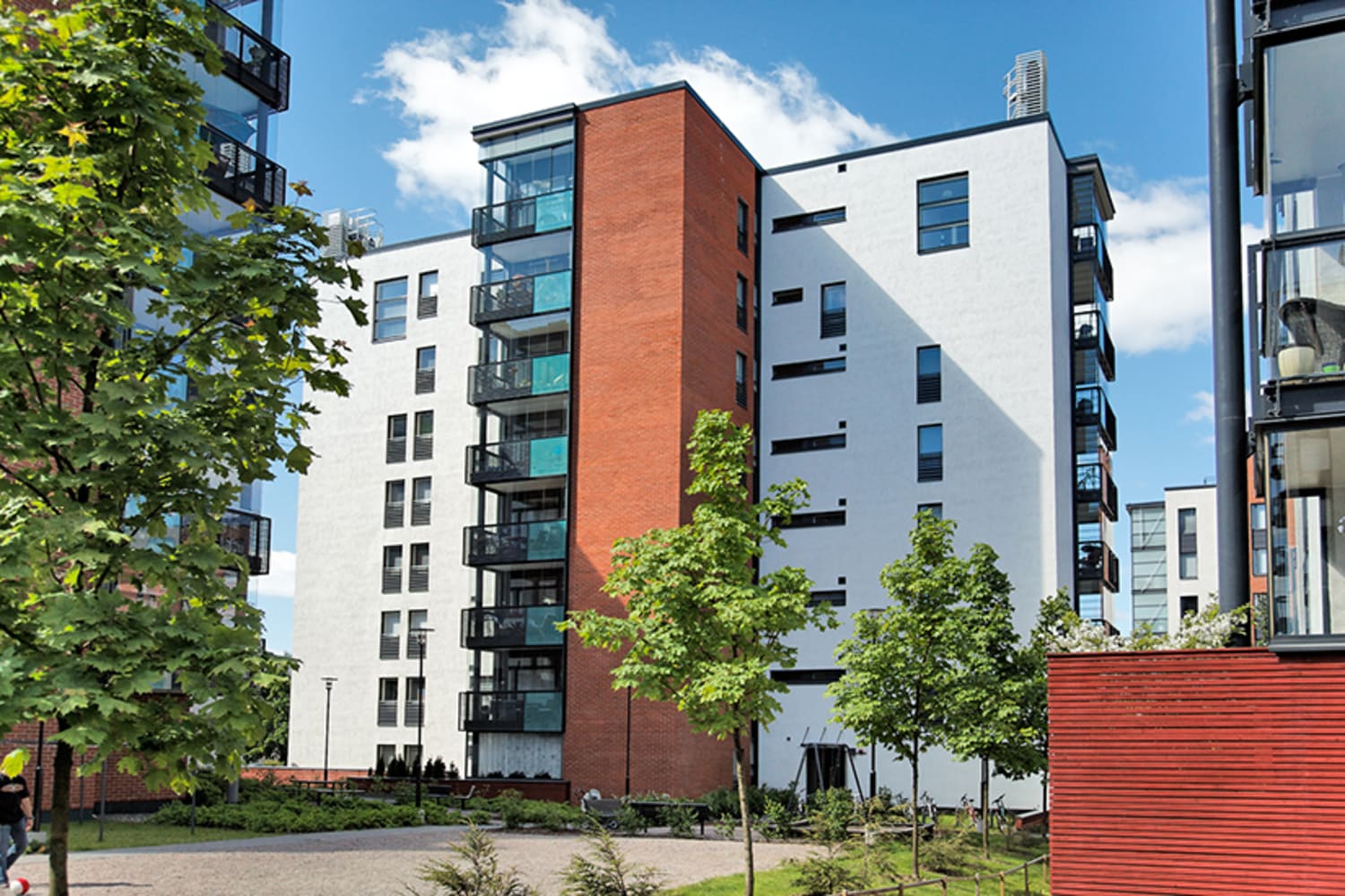 Vuokrattavissa asunnoissa on vaaleat parkettilattiat, kauttaaltaan kaakeloidut mukavuuslattialämmitetyt kylpyhuoneet ja valoisat pohjaratkaisut. Keittiöissä on kauniit mustat kivitasot ja vakiovarusteina mikroaaltouuni, jää-pakastinkaappi, astianpesukone sekä keraaminen liesi uuneineen. Osassa asuntoja on lasitettu parveke, osassa pihaterassi.