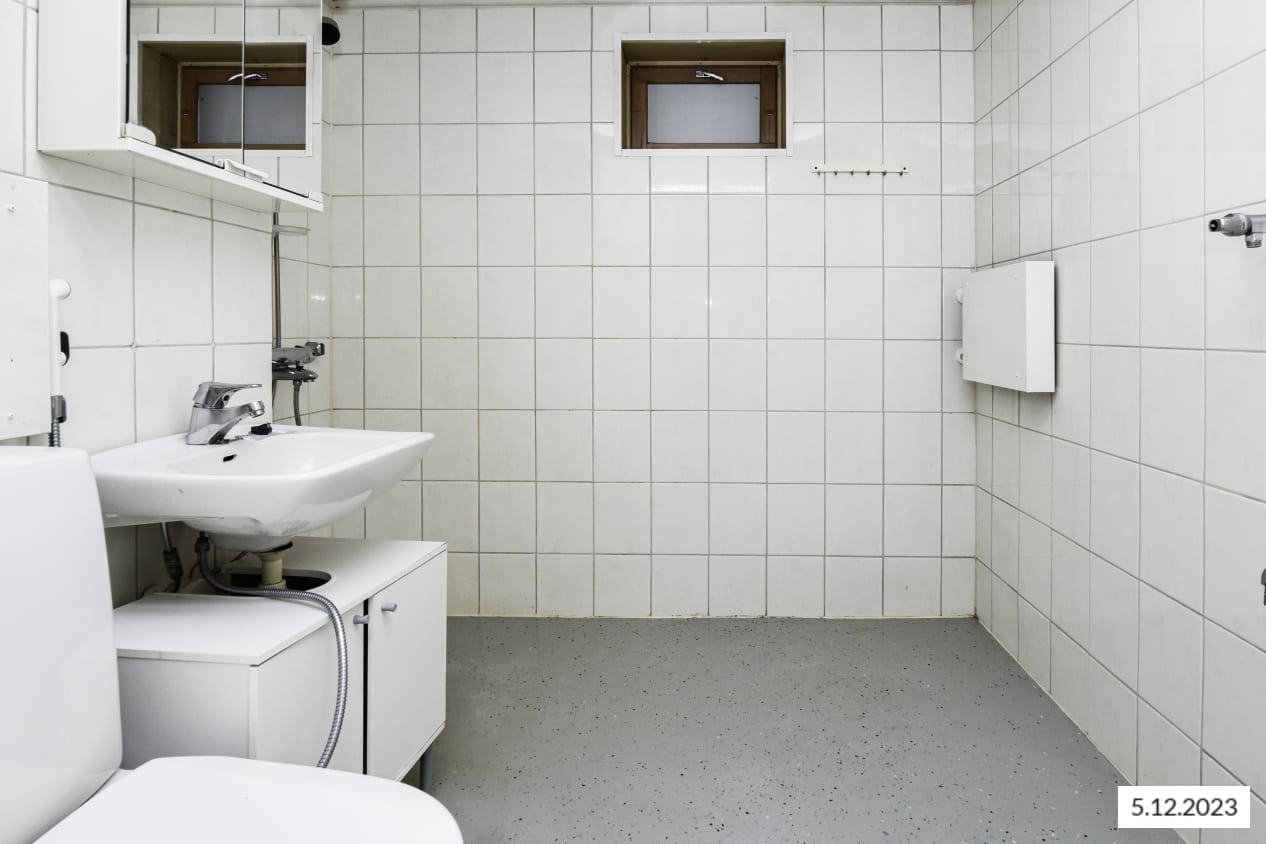 Asuinhuoneiden lattiamateriaalina on laminaatti. Kylpyhuoneen seinät on kaakeloitu.