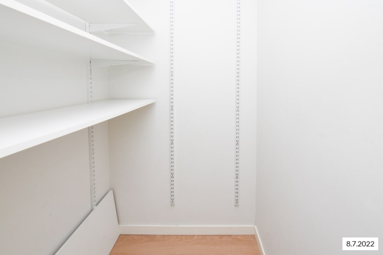 Viihtyisän pikkukodin iso, länteen aukeava ikkuna tuo iltapäivän auringonsäteet sisälle saakka. Olohuoneeseen yhdistyvän keittokomeron jatkeeksi mahtuu pieni ruokapöytä ja tilaa vaatesäilytykselle löytyy erillisestä vaatehuoneesta.