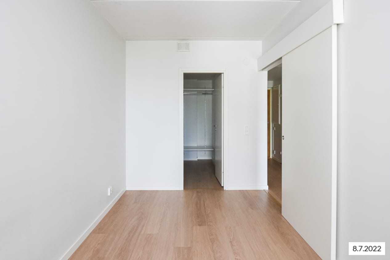Viihtyisän kodin sydän on olohuoneen ja keittiön muodostama yhtenäinen tila, joka on helppo kalustaa viihtyisäksi. Makuuhuone on erotettu olohuoneesta kahdella liukuovella ja kulku sinne käy näppärästi kummaltakin puolelta sänkyä. Makuuhuoneesta on käynti myös omalle parvekkeelle. Vaatesäilytykselle on reilusti tilaa erillisessä vaatehuoneessa.