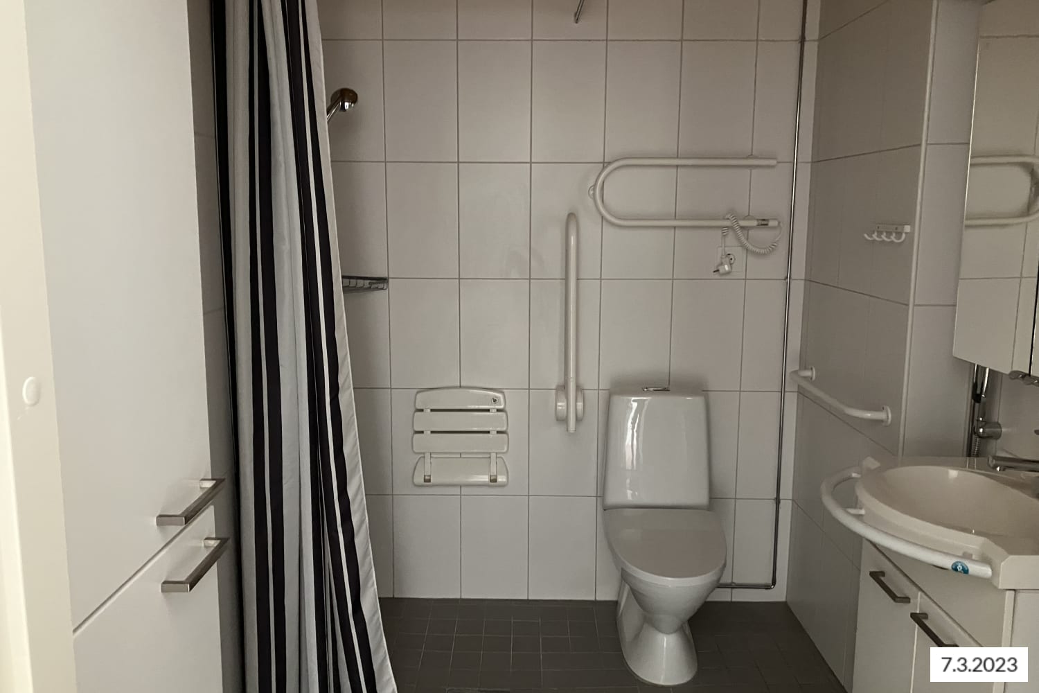 Tämän valoisan kaksion lattiat ovat lakattua tammiparkettia. Kaakeloidussa kylpyhuoneessa seinää koristaa hillitty kukkakuvioinen boordi, peseytymistä helpottavat istuin- ja käsituet ja vaaleanharmaan laatoituksen alla mukavuuslattialämmitys hemmottelee varpaita. Keittokomerossa on valkoiset kaapistot ja taivereunainen työtaso betonikuvioistalaminaattia. Vakiovarusteisiin kuuluvat liesitaso, kalusteuuni, astianpesukone sekä jää-pakastinkaappi. Kaapistossa on paikka myös mikroaaltouunille.