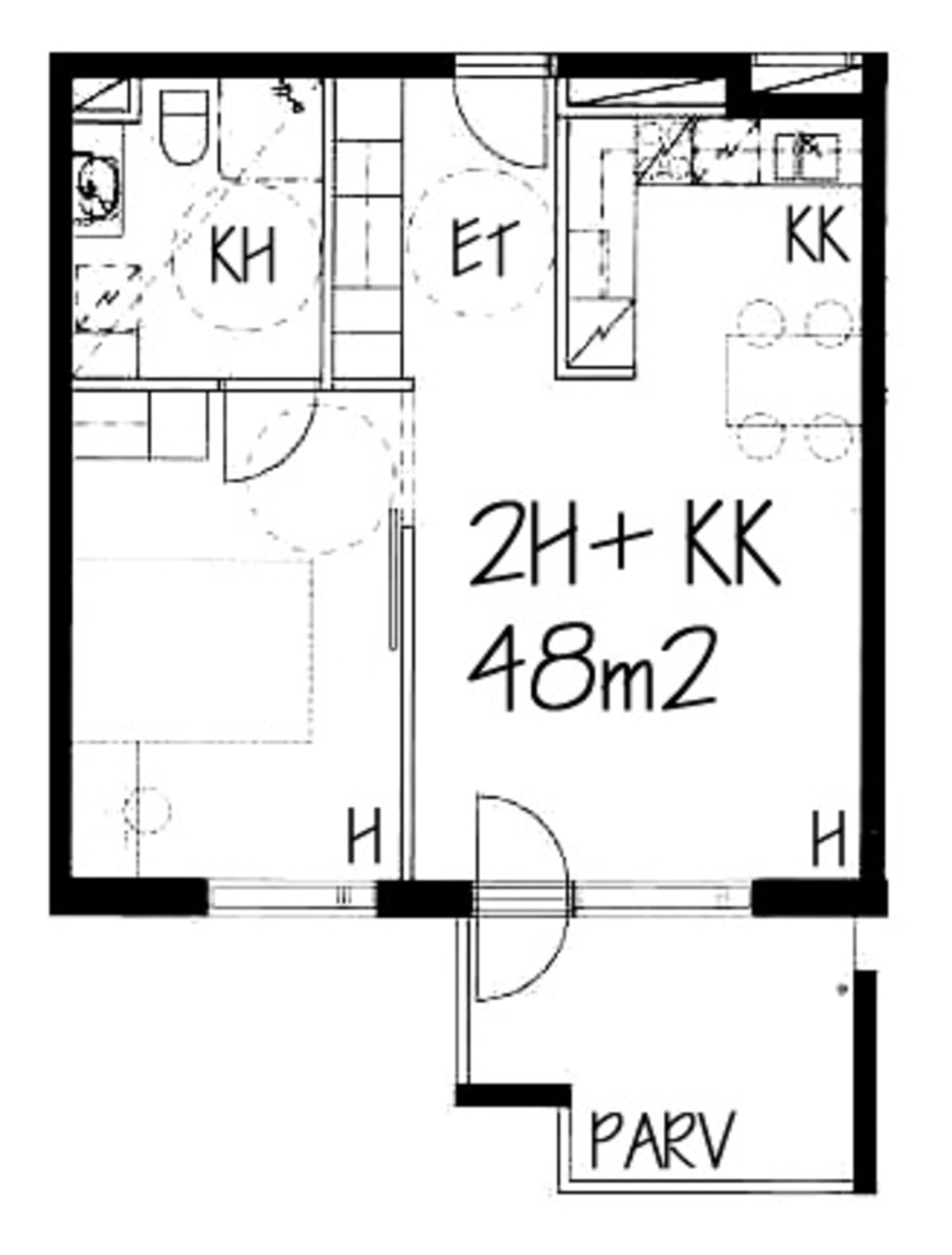 Näppärässä asunnossa on käytännöllisiä yksityiskohtia kuten käynti kylpyhuoneeseen suoraan makuuhuoneesta, ovisummeri ja koneellinen ilmanpoistojärjestelmä. Parvekkeelta avautuu näkymä lounaaseen Korvatunturinpolulle.