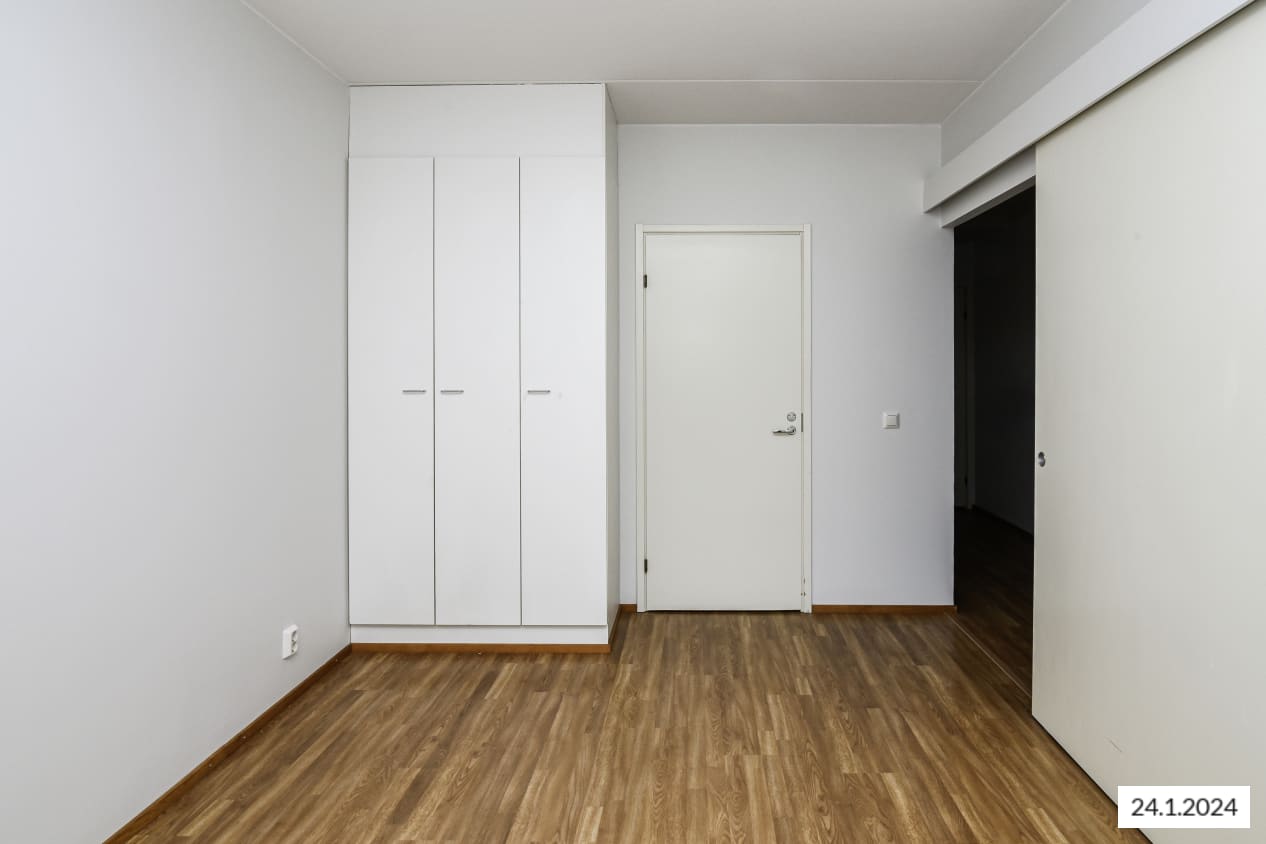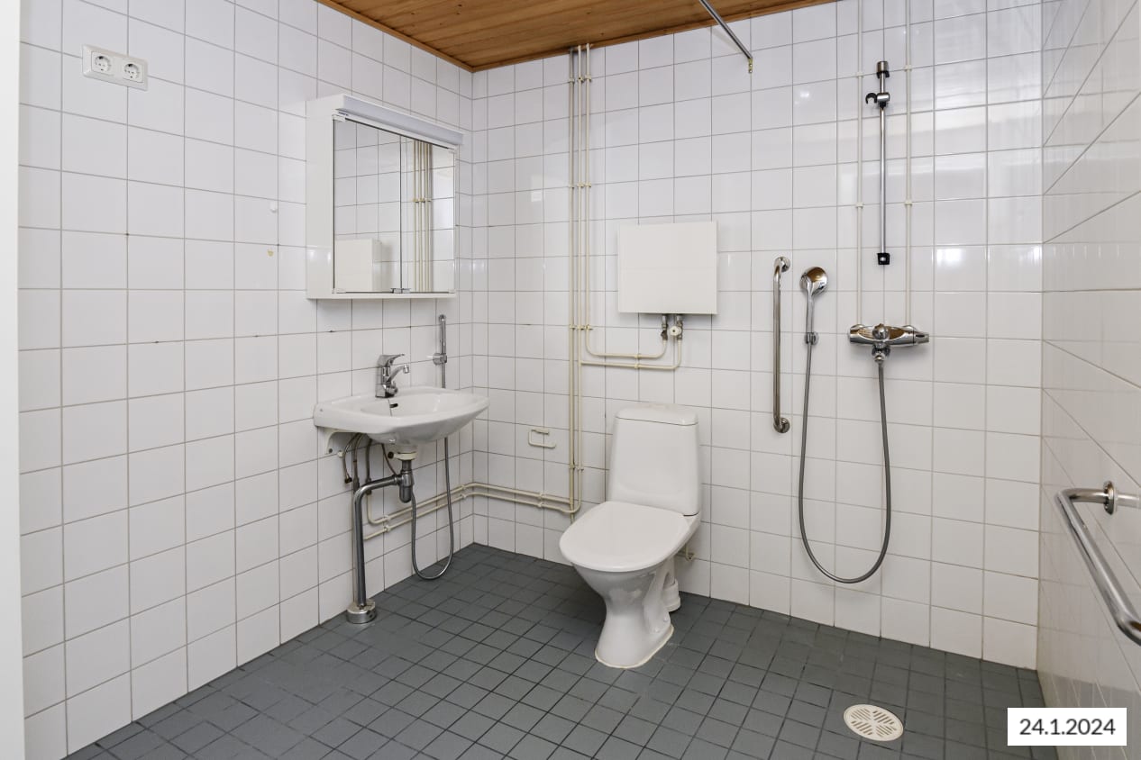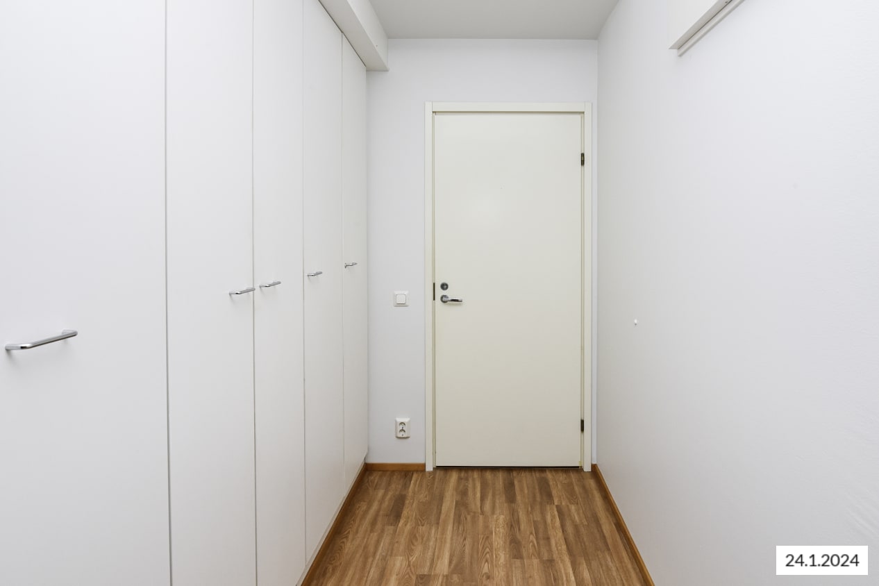 Kaksion asuinhuoneiden lattiamateriaalina on laminaatti. Kaakeloituun kylpyhuoneeseen mahtuu pyykinpesukone.