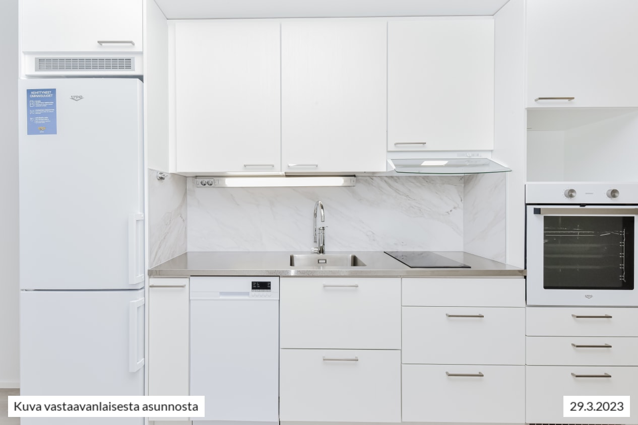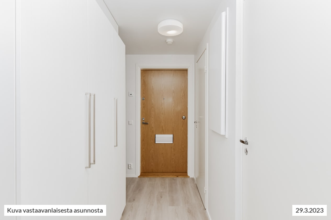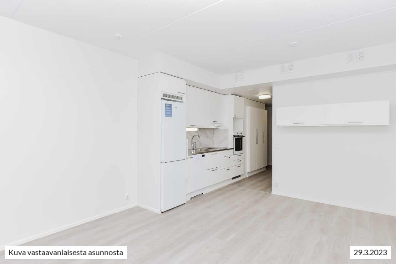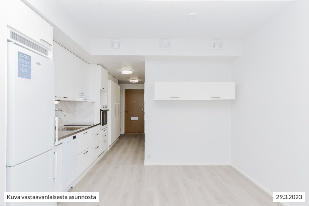 Tehokkaassa pikkukodissa kaikki tarvittava löytyy lähietäisyydeltä, myös runsaat säilytystilat: eteisessä on kaappien lisäksi lämmin irtaimistovarasto, jota ei ole laskettu asunnon pinta-alaan. Yksiön käytännöllisen keittiö/olohuoneen voi kalustaa usealla tavalla niin, että sekä ruokailulle, oleskelulle ja nukkumiselle on omat paikkansa. Näppärässä kylpyhuoneessa on tilaa sekä spa-elämyksille että omalle pyykkikoneelle. Pintojen neutraalit värivalinnat ovat toimiva pohja omalle, persoonalliselle sisustustyylillesi. Tämä sympaattinen tilaihme tarjoaa kaiken, mitä kodissa tarvitaan. Olisiko tämä sinun uusi vuokrakotisi?