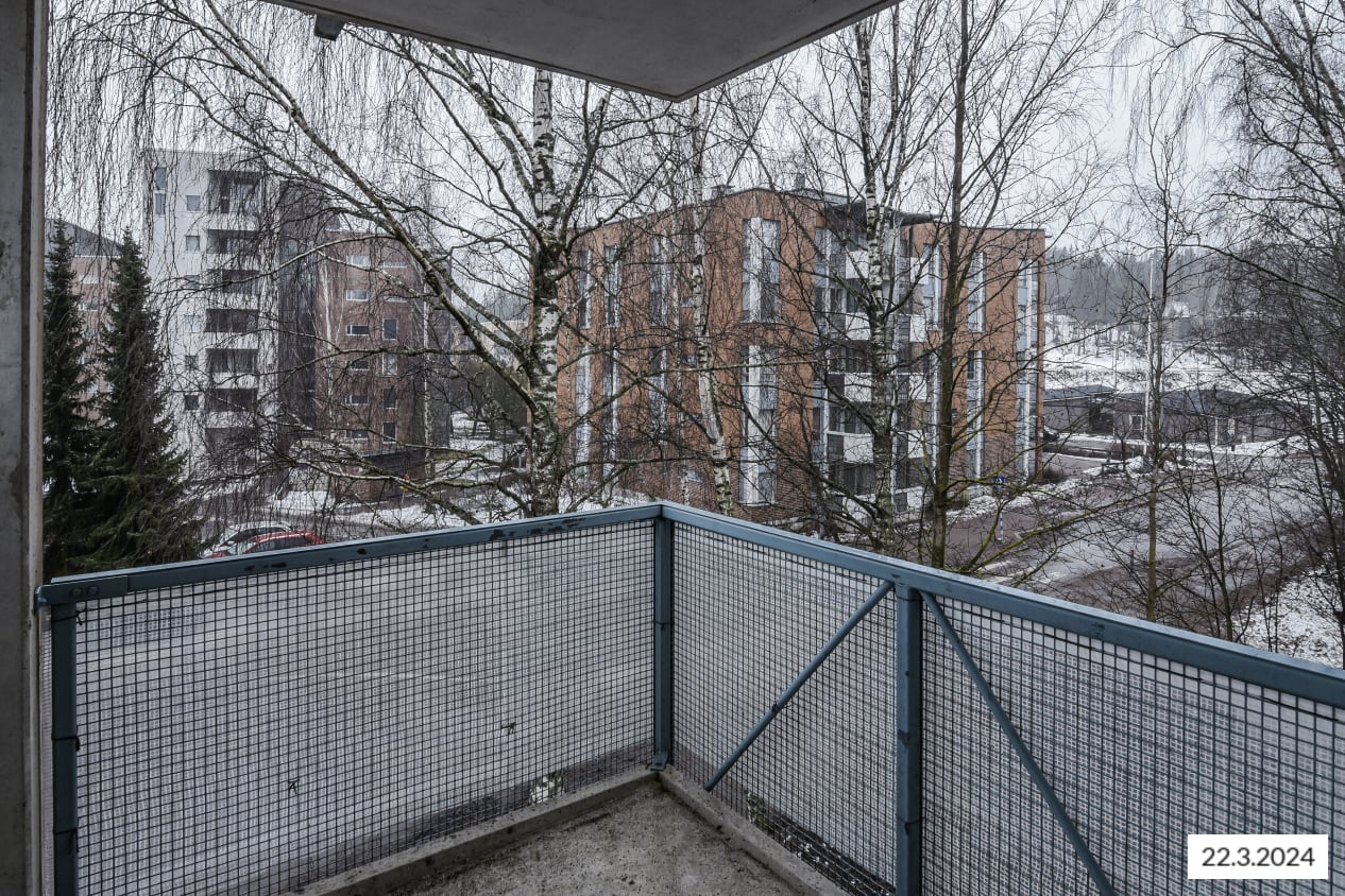 Neliöitään tilavamman tuntuisen kaksion ikkunallinen keittokomero ja olohuone muodostavat mukavan oleskelutilan, joka helppo kalustaa viihtyisäksi. Olohuoneesta pääsee parvekkeelle, jossa on kesällä mukava nauttia vaikkapa aamukahvit.