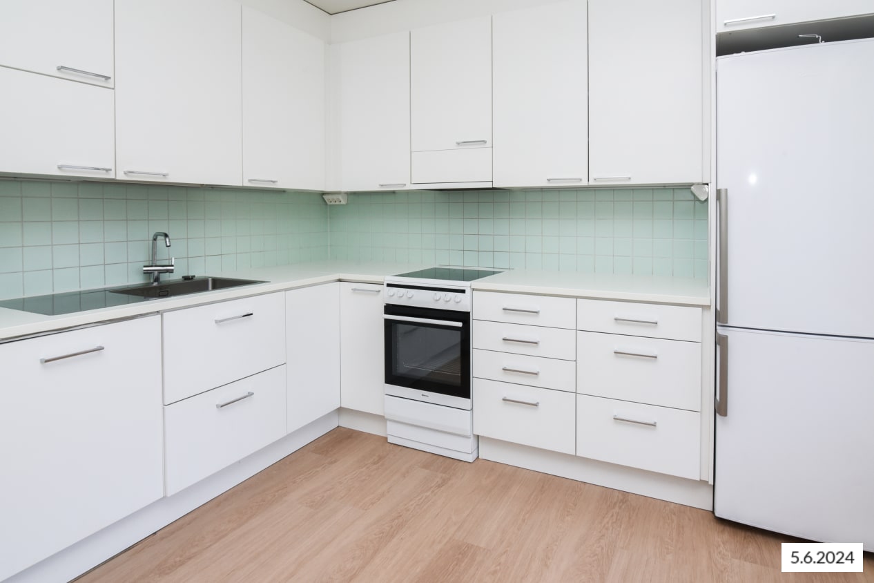 Selkeälinjaisessa ja käytännöllisessä kaksiossa on erillinen ruokailukeittiö, jossa on kotikokille tilaa työskennellä. Olohuoneesta pääsee parvekkeelle, jossa on kesällä mukava nauttia vaikkapa iltapäiväkahvit. Makuuhuoneessa on reilusti komeroita vaatesäilytykselle.