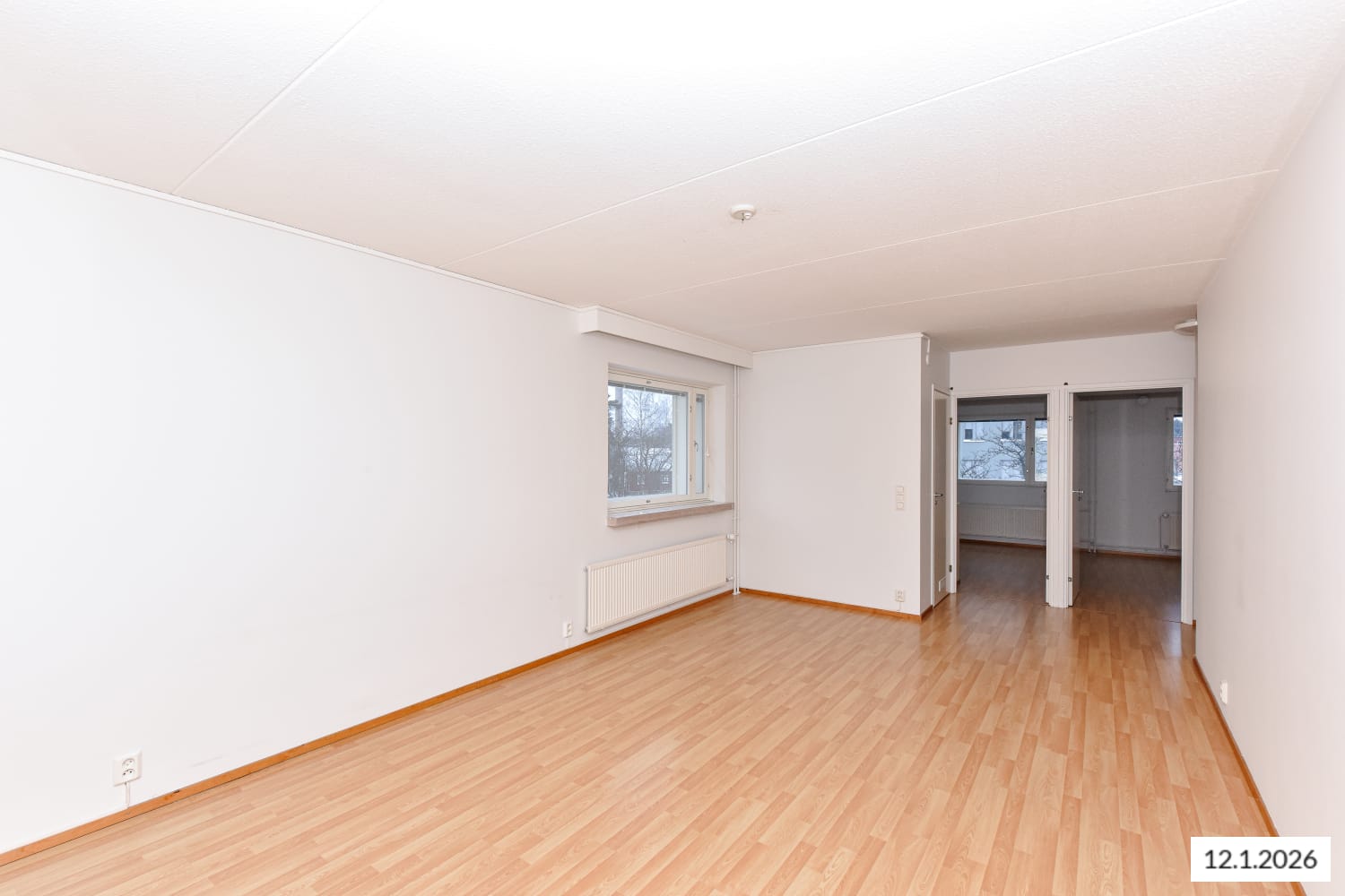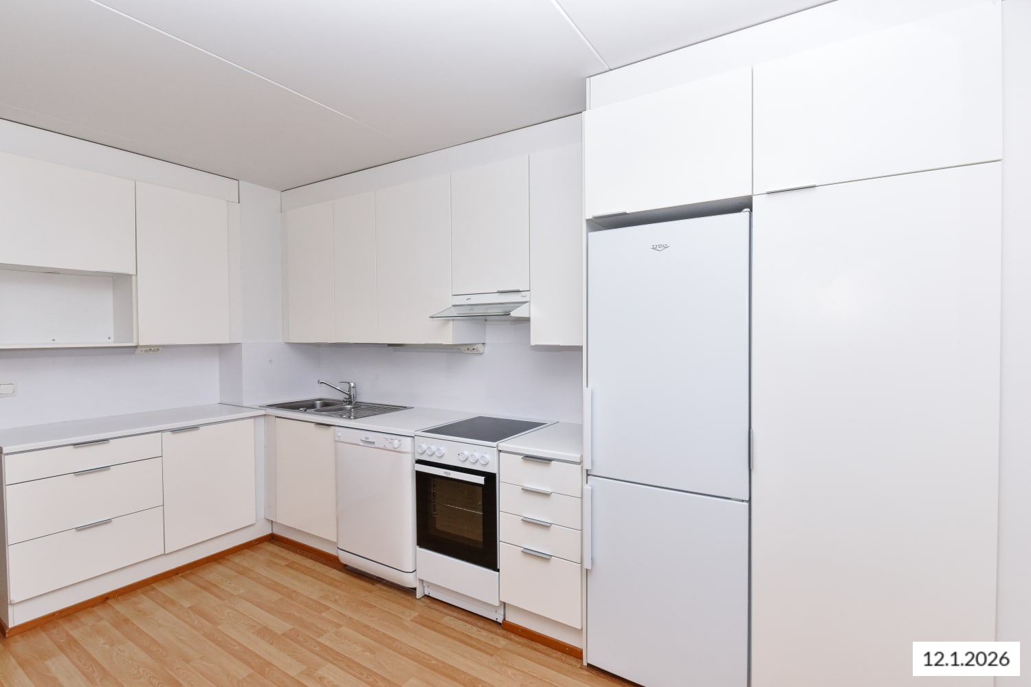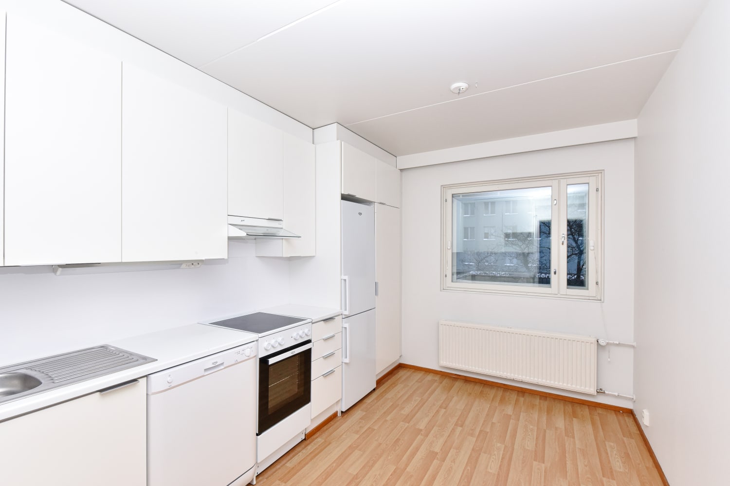 Asuinhuoneiden lattiamateriaalina on laminaatti. Keittiössä on jää-pakastinkaappi ja varaus astianpesukoneelle.
