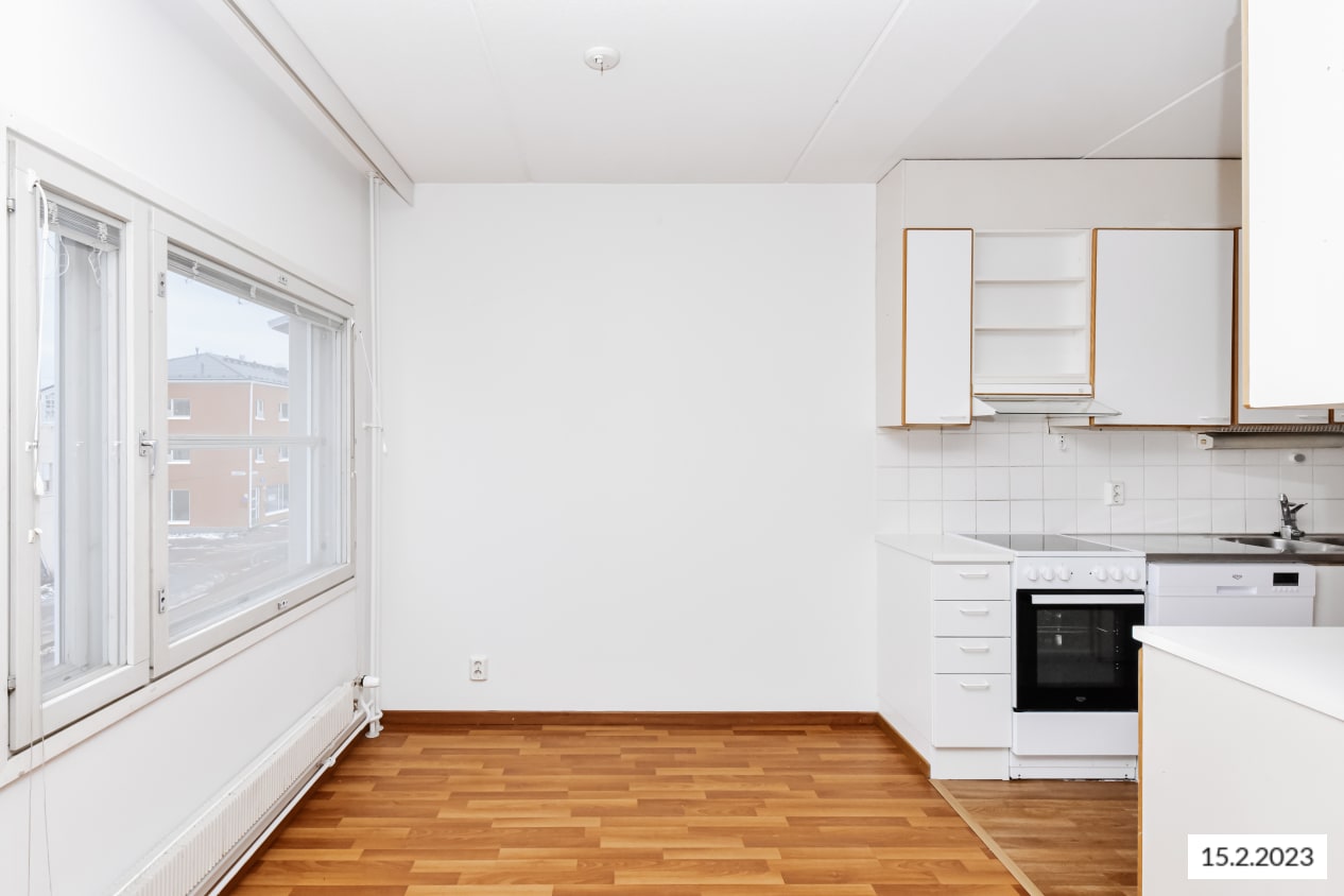 Asunnon keittiö kunnostetaan maalis-huhtikuussa 2023.