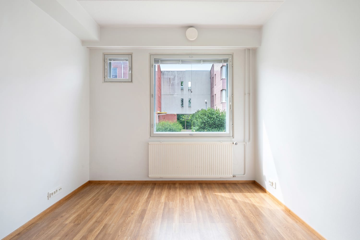 Näppäränkokoinen kaksio, jossa on avara pohjaratkaisu. Keittiösyvennys on mukavasti oleskelutilan yhteydessä, samoin parveke. Makuuhuoneen yhteydessä on erillinen vaatehuone, johon sopii mainiosti vähän enemmänkin tavaraa säilytykseen. Lisää säilytystilaa löytyy valkoisista eteiskaapistoista. Vaaleasävyinen koti on helppo sisustaa juuri sellaiseksi kuin itse haluat. Asunnossa on valkoiseksi maalatut seinät ja puunväriset laminaattilattiat. Keittiökaapit ovat valkoiset ja niissä on minimalistiset krominväriset lankavetimet. Keittiön perusvarustukseen kuuluu jääkaappipakastin, nelilevyinen liesi sekä tilavaraus astianpesukoneelle ja mikroaaltouunille. Tilava kylpyhuone on toimiva ja sinne sopii hyvin esimerkiksi pyykinpesukone ja kuivausrumpu. Halutessasi voit käyttää pyykkihuoltoon myös taloyhtiön yhteistä pesulaa. Kylpyhuoneen seinät ovat valkoiseksi laatoitetut ja lattialla on harmaasävyinen kosteiden tilojen muovimatto. Pientä arjen luksusta tähän asuntoon tuo oma sauna, jonka löylyissä voi karistaa kuluneen päivän kiireet ja stressin vaikka päivittäin.