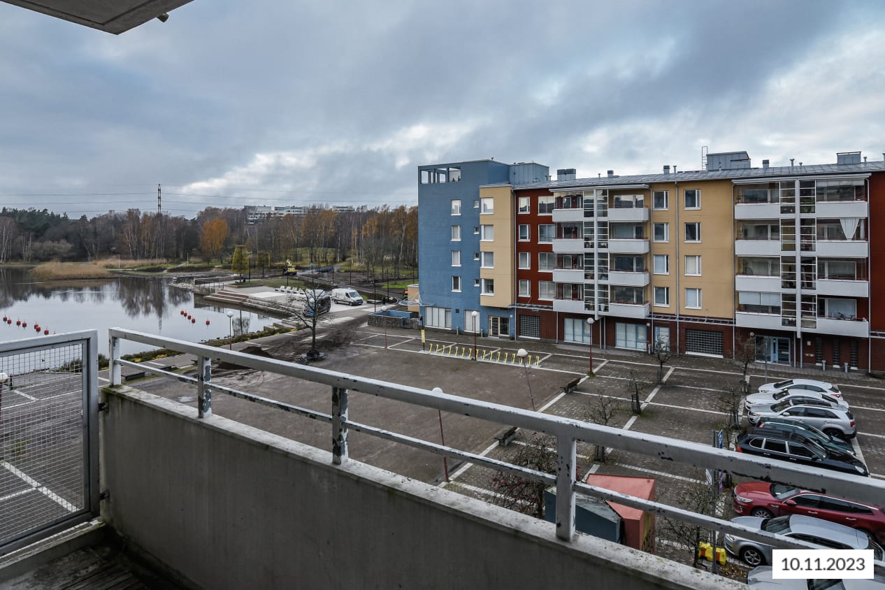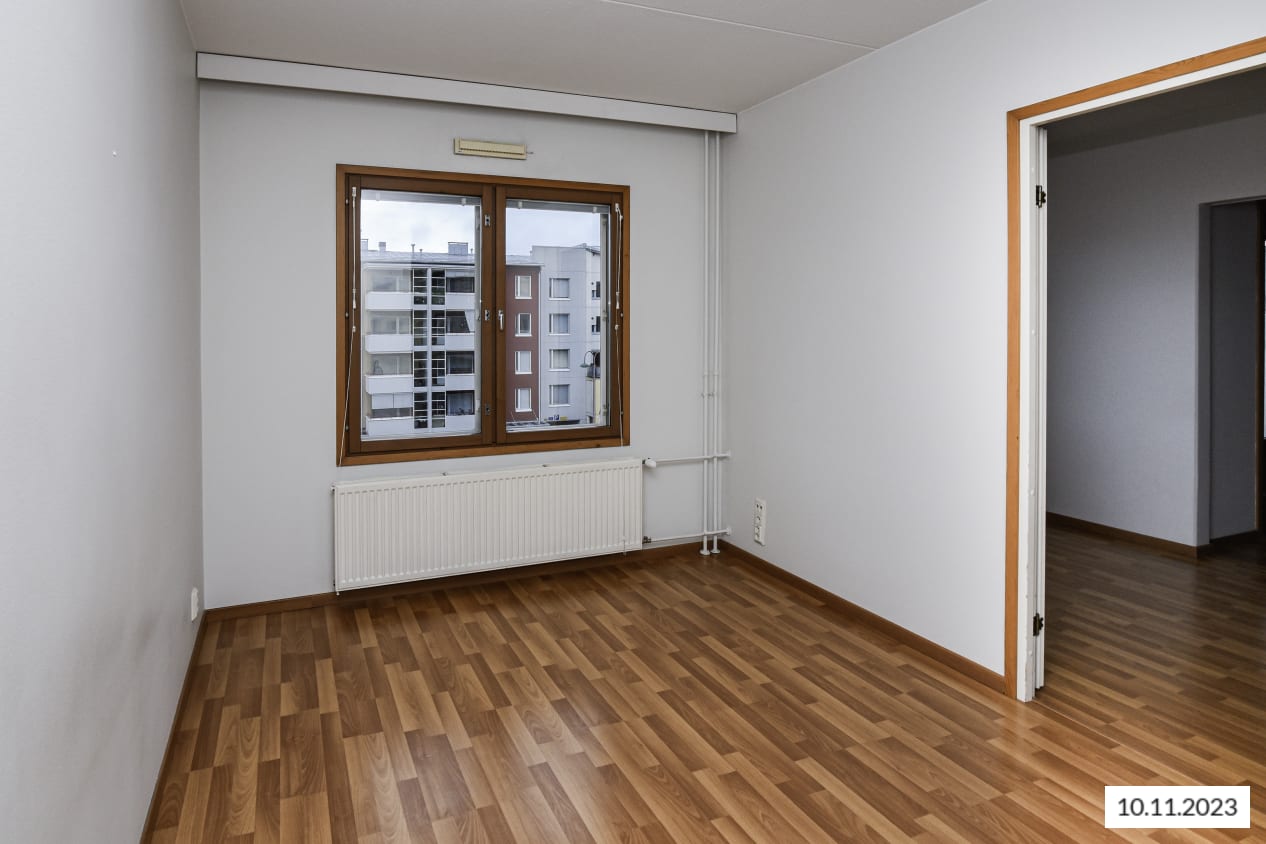 Tilavassa kaupunkikaksiossa on fiksu pohjaratkaisu. Makuuhuoneesta pääsee suoraan keittiöön aamukahvin keittoon ja olohuoneessa on tilaa isommallekin sohvaryhmälle. Parvekkeelta avautuu näkymä luoteeseen Tilkantorin puolelle.