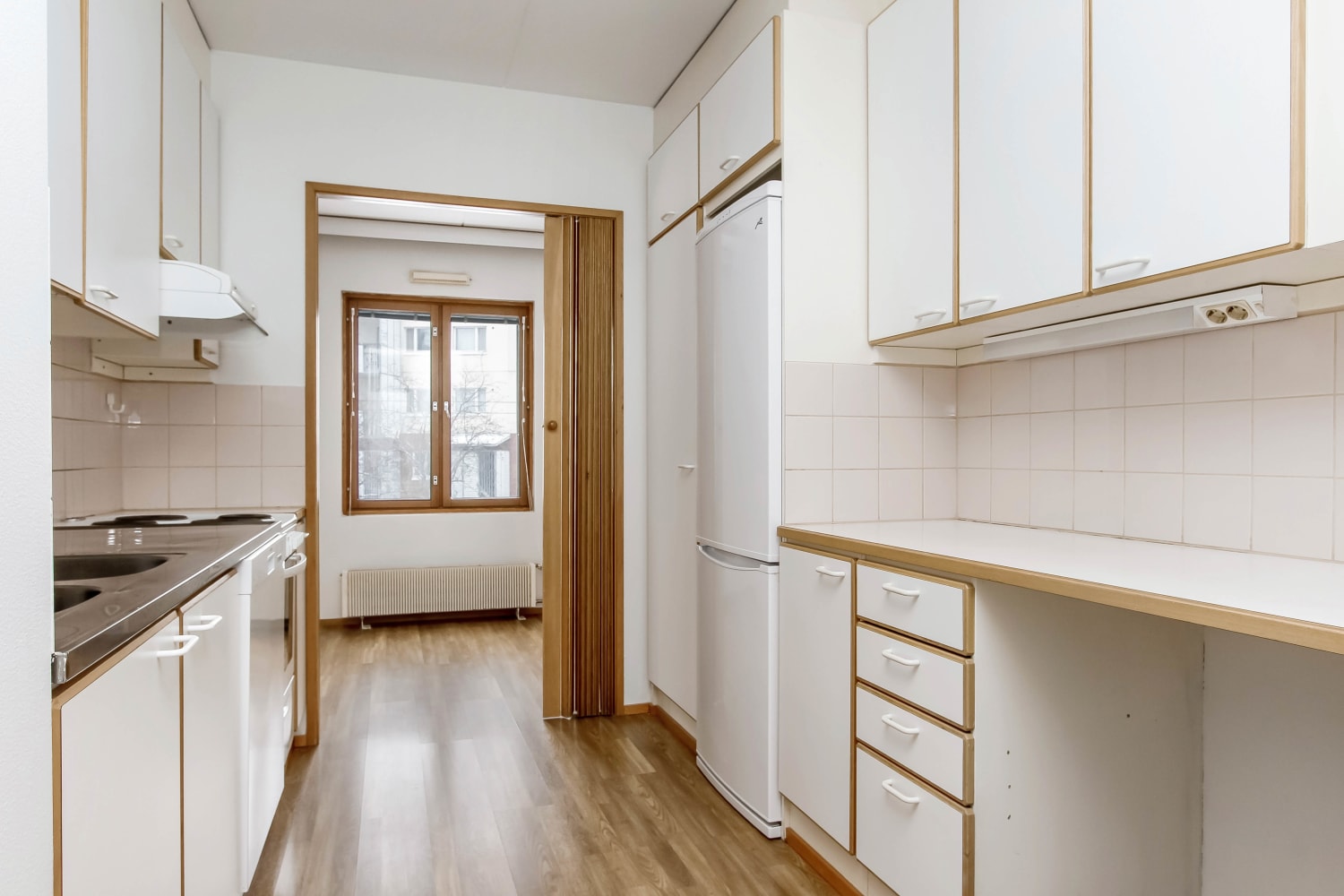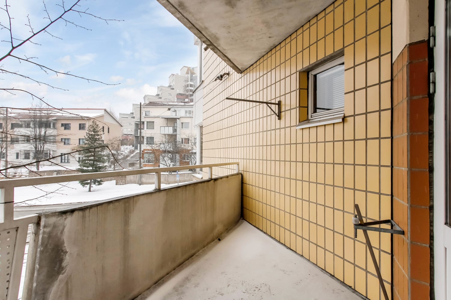 Tämä sympaattinen ja hyvin pidetty kaksio viehättää persoonallisella pohjaratkaisullaan. Keittiö ja olohuone muodostavat avaran kokonaisuuden ja makuuhuoneen vaatehuoneessa on hyvin säilytystilaa. Asunnon parvekkeelta avautuu esteetön näkymä pohjoiseen ja länteen Tilkankadun ja Korppaanmäentien risteykseen.