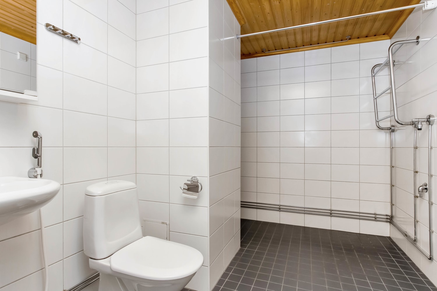 Asuinhuoneissa on laminaattilattiat ja kylpyhuone on kaakeloitu. Keittiössä on jää-pakastinkaappi ja nelilevyinen sähköliesi.