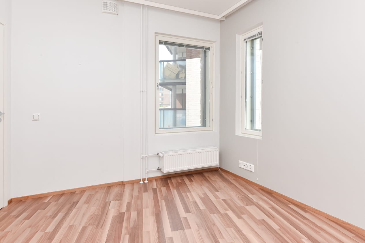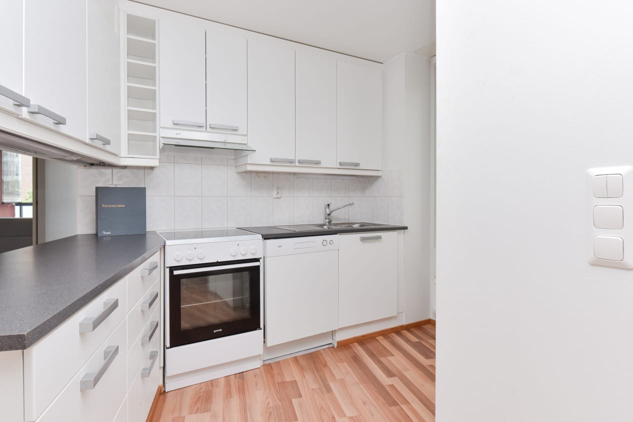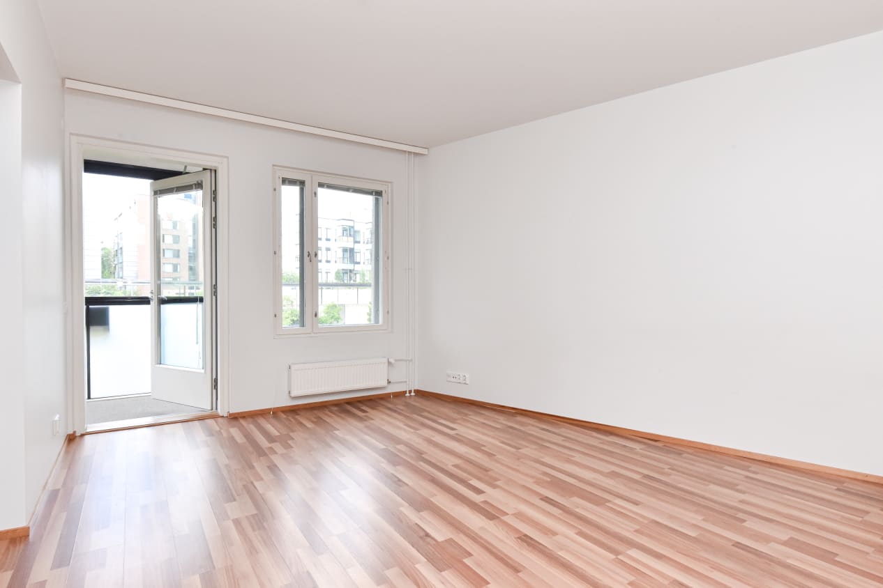 Tämä iloinen kolmio on kuin tehty perheelle, joka viihtyy kotona! Ilmavaan keittiöön mahtuu juhlallisempikin ruokapöytä ja tila jatkuu yhtenäisenä valoisaan olohuoneeseen. Iso makuuhuone jatkaa asunnon persoonallista linjaa kulmikkailla muodoillaan ja asunnon aurinkoinen parveke avautuu avaran korttelipihan puolelle.