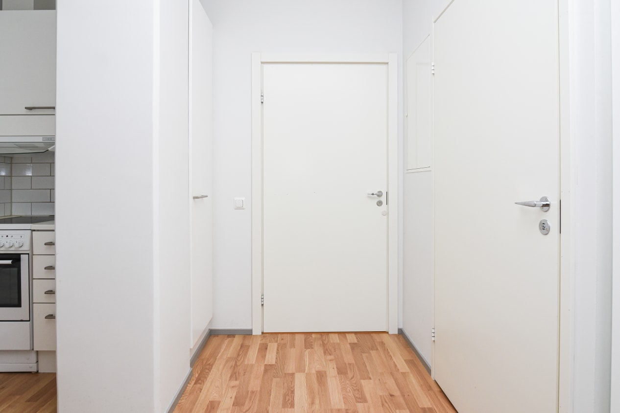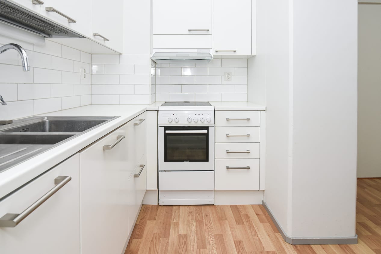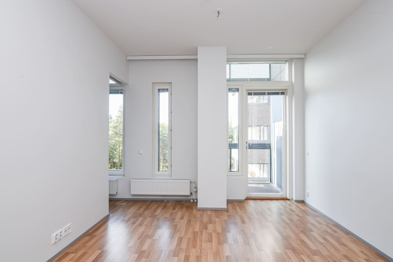 Ylimmän kerroksen valoa ja rauhaa. Etsitkö vuokra-asuntoa, jossa yhdistyvät skandinaavinen vaaleus, kompakti pohjaratkaisu ja ilmava huonekorkeus? Tässä on koti, johon kannattaa tutustua! Noin kolmeen metriin kohoava katto korostuu korkeiden ikkunoiden ansiosta, hyvin varusteltu keittokomero viehättää valkoisilla pinnoillaan ja lasitetulta parvekkeelta avautuu aurinkoinen näkymä pihan yli puistoon. Asuinhuoneissa on helppohoitoiset tammilaminaattilattiat. Kylpyhuoneessa on pehmeän tummanharmaa lattialaatoitus ja seinissä pelkistetty valkoinen kaakelointi. Keittokomeron kaapistot ovat sileäpintaiset ja valkoiset, työtasot valkoista taivereunaista laminaattia ja puhtaan ilmeen täydentää valkoinen kiiltävä kalustevälikaakelointi. Varusteina jää-pakastinkaappi, keraaminen liesi sekä kalusteisiin integroitu astianpesukone.