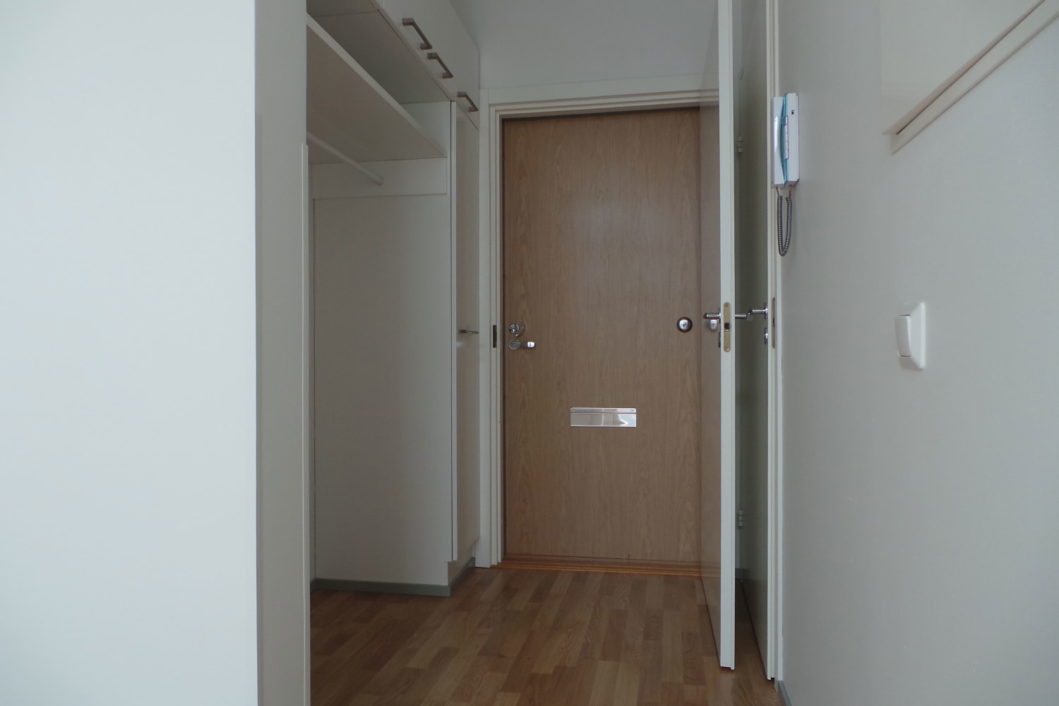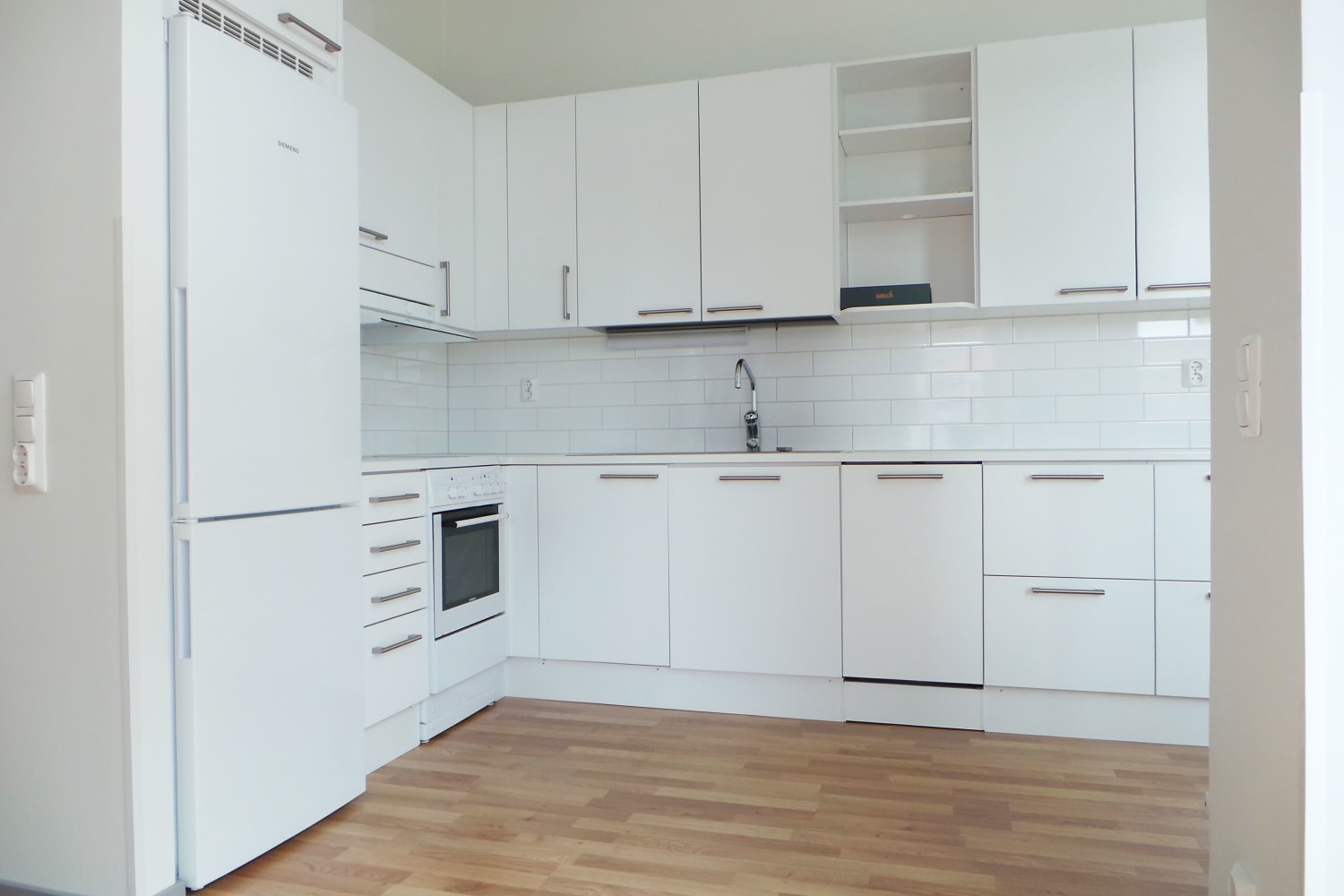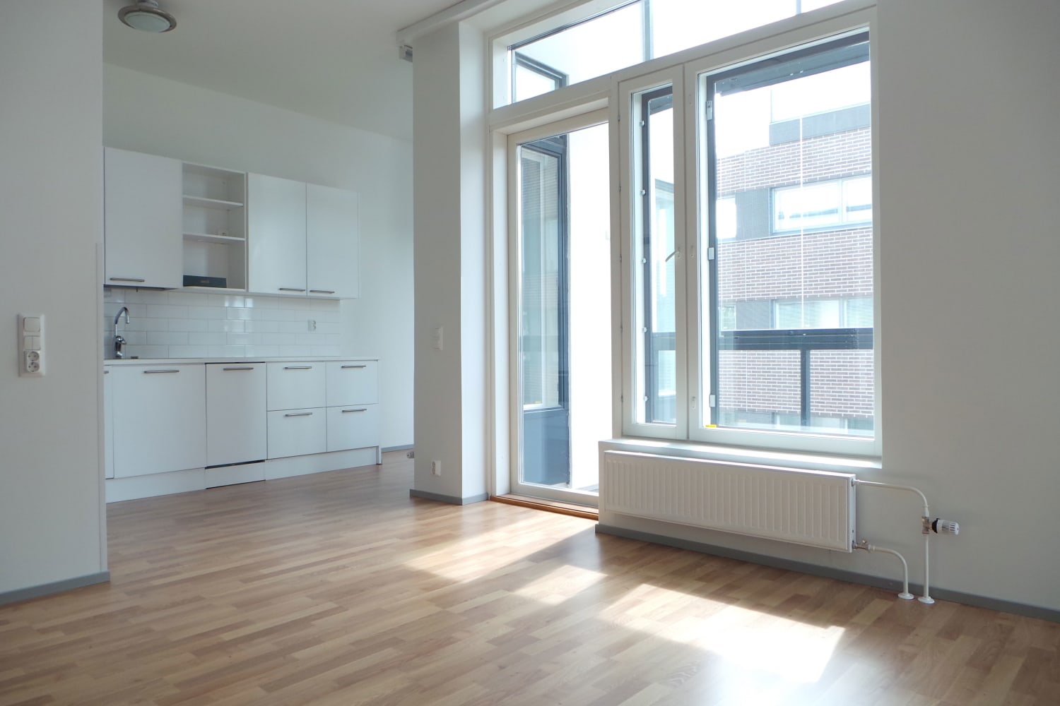 Koti korttelin keskellä. Tähän somaan vuokrakaksioon on vaikea olla ihastumatta. Kulmamakuuhuone on mukavan rauhallinen, ilmavaan olohuoneeseen tulvii luonnonvaloa ja keittokomeron vieressä on parahultainen tila joko aamiaispöydälle tai vaikkapa pienelle kirjastonurkkaukselle. Noin kolmeen metriin kohoava katto korostuu korkeiden ikkunoiden ansiosta ja lasitetulta parvekkelta avautuu aurinkoinen näkymä pihan yli puistoon. Asuinhuoneissa on helppohoitoiset tammilaminaattilattiat. Kylpyhuoneessa on pehmeän tummanharmaa lattialaatoitus ja seinissä pelkistetty valkoinen kaakelointi. Keittokomeron kaapistot ovat sileäpintaiset ja valkoiset, työtasot valkoista taivereunaista laminaattia ja puhtaan ilmeen täydentää valkoinen kiiltävä kalustevälikaakelointi. Varusteina jää-pakastinkaappi, keraaminen liesi sekä kalusteisiin integroitu astianpesukone.