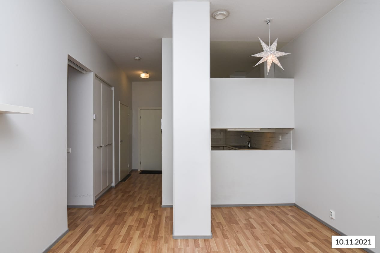 Koti korttelin keskellä. Etsitkö vuokra-asuntoa, jossa yhdistyvät skandinaavinen vaaleus, kompakti pohjaratkaisu ja ilmava huonekorkeus? Tässä on koti, johon kannattaa tutustua! Noin kolmeen metriin kohoava katto korostuu korkeiden ikkunoiden ansiosta, hyvin varusteltu keittokomero viehättää valkoisilla pinnoillaan ja makuuhuoneen sisustamista helpottaa liukuovellinen vaatekomero. Lasitettu parveke antaa aamuaurinkoon pihan puolelle. Asuinhuoneissa on helppohoitoiset tammilaminaattilattiat. Kylpyhuoneessa on pehmeän tummanharmaa lattialaatoitus ja seinissä pelkistetty valkoinen kaakelointi. Keittokomeron kaapistot ovat sileäpintaiset ja valkoiset, työtasot valkoista taivereunaista laminaattia ja puhtaan ilmeen täydentää valkoinen kiiltävä kalustevälikaakelointi. Varusteina jää-pakastinkaappi, keraaminen liesi sekä kalusteisiin integroitu astianpesukone.