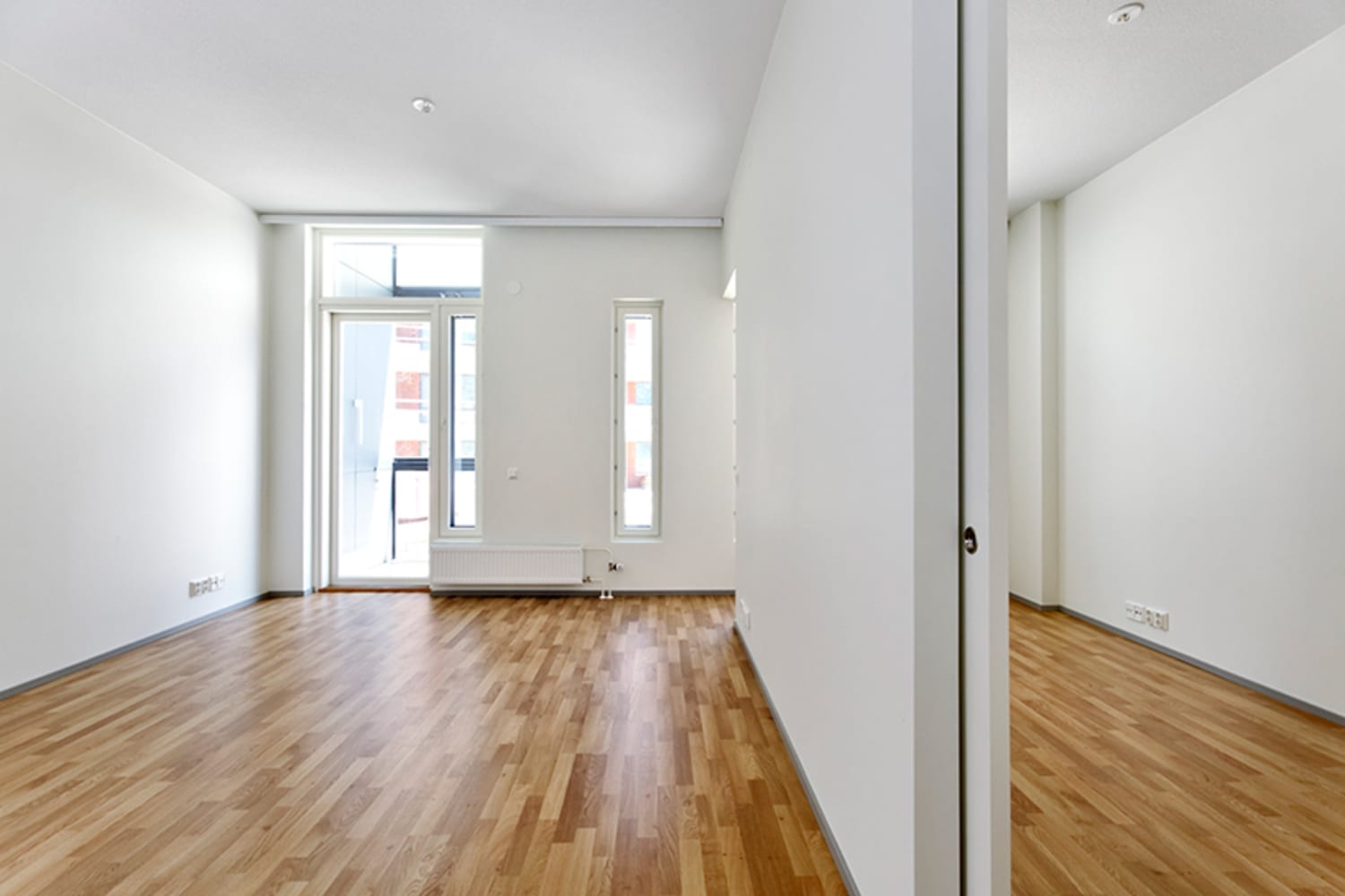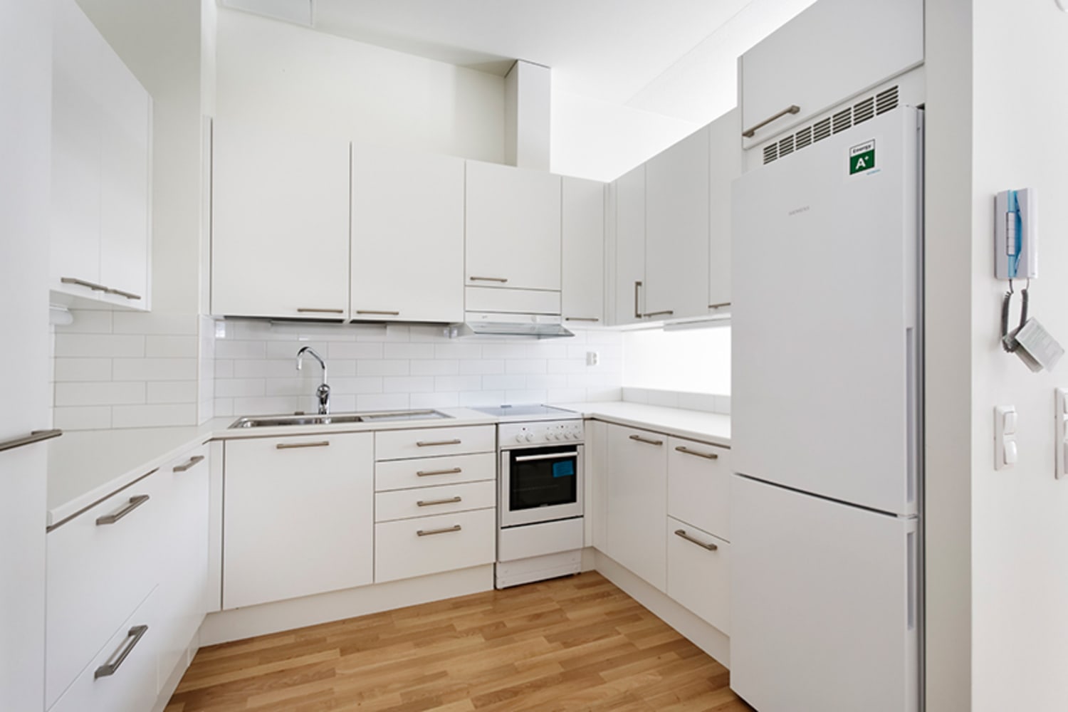 Koti korttelin keskellä. Etsitkö vuokra-asuntoa, jossa yhdistyvät skandinaavinen vaaleus, kompakti pohjaratkaisu ja ilmava huonekorkeus? Tässä on koti, johon kannattaa tutustua! Noin kolmeen metriin kohoava katto korostuu korkeiden ikkunoiden ansiosta, hyvin varusteltu keittokomero viehättää valkoisilla pinnoillaan ja makuuhuoneen sisustamista helpottaa liukuovellinen vaatekomero. Lasitettu parveke antaa aamuaurinkoon pihan puolelle. Asuinhuoneissa on helppohoitoiset tammilaminaattilattiat. Kylpyhuoneessa on pehmeän tummanharmaa lattialaatoitus ja seinissä pelkistetty valkoinen kaakelointi. Keittokomeron kaapistot ovat sileäpintaiset ja valkoiset, työtasot valkoista taivereunaista laminaattia ja puhtaan ilmeen täydentää valkoinen kiiltävä kalustevälikaakelointi. Varusteina jää-pakastinkaappi, keraaminen liesi sekä kalusteisiin integroitu astianpesukone.