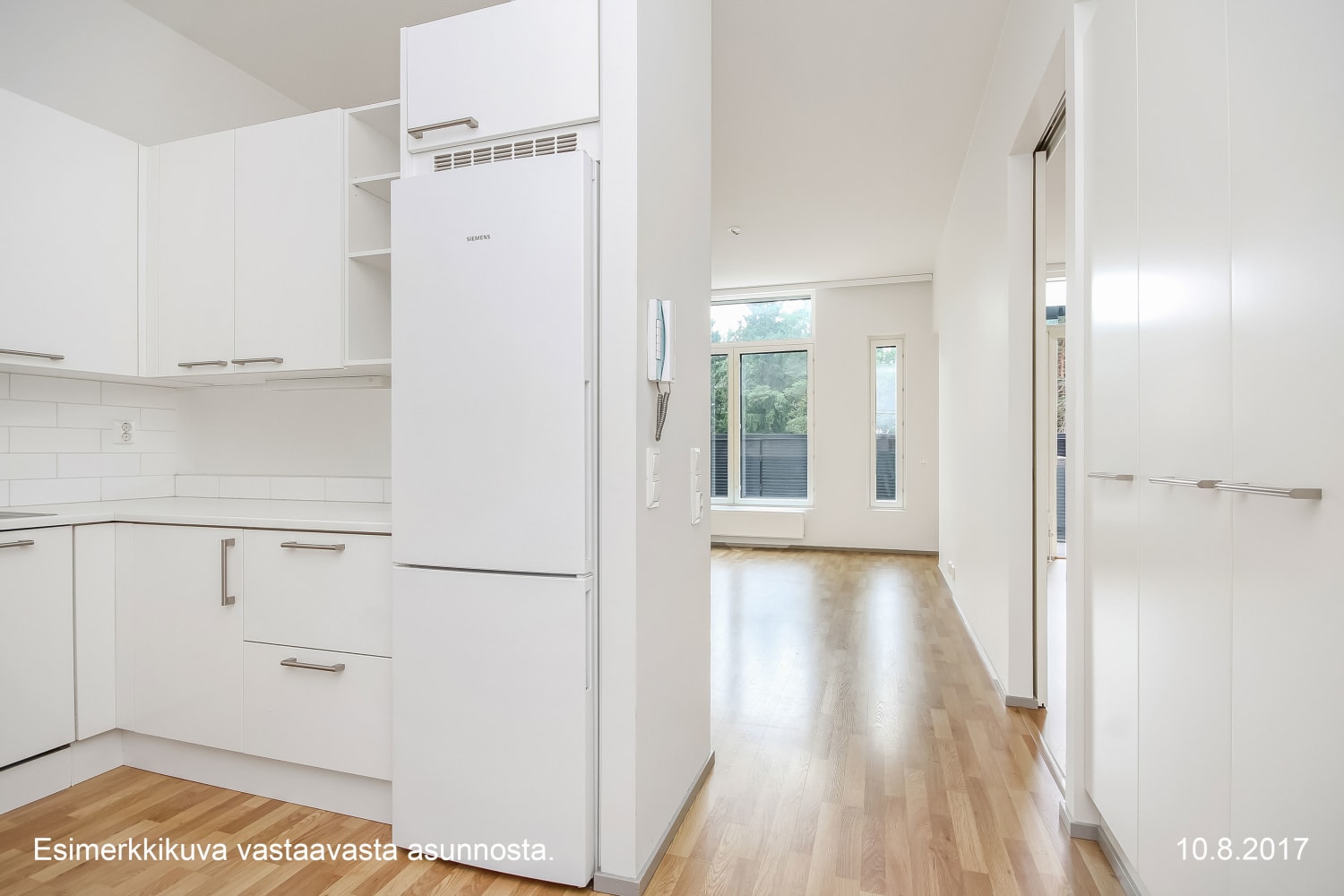 Ylimmän kerroksen valoa ja rauhaa. Etsitkö vuokra-asuntoa, jossa yhdistyvät skandinaavinen vaaleus, kompakti pohjaratkaisu ja ilmava huonekorkeus? Tässä on koti, johon kannattaa tutustua! Noin kolmeen metriin kohoava katto korostuu korkeiden ikkunoiden ansiosta, hyvin varusteltu keittokomero viehättää valkoisilla pinnoillaan ja lasitetulta parvekkeelta avautuu aurinkoinen näkymä pihan yli puistoon. Asuinhuoneissa on helppohoitoiset tammilaminaattilattiat. Kylpyhuoneessa on pehmeän tummanharmaa lattialaatoitus ja seinissä pelkistetty valkoinen kaakelointi. Keittokomeron kaapistot ovat sileäpintaiset ja valkoiset, työtasot valkoista taivereunaista laminaattia ja puhtaan ilmeen täydentää valkoinen kiiltävä kalustevälikaakelointi. Varusteina jää-pakastinkaappi, keraaminen liesi sekä kalusteisiin integroitu astianpesukone.