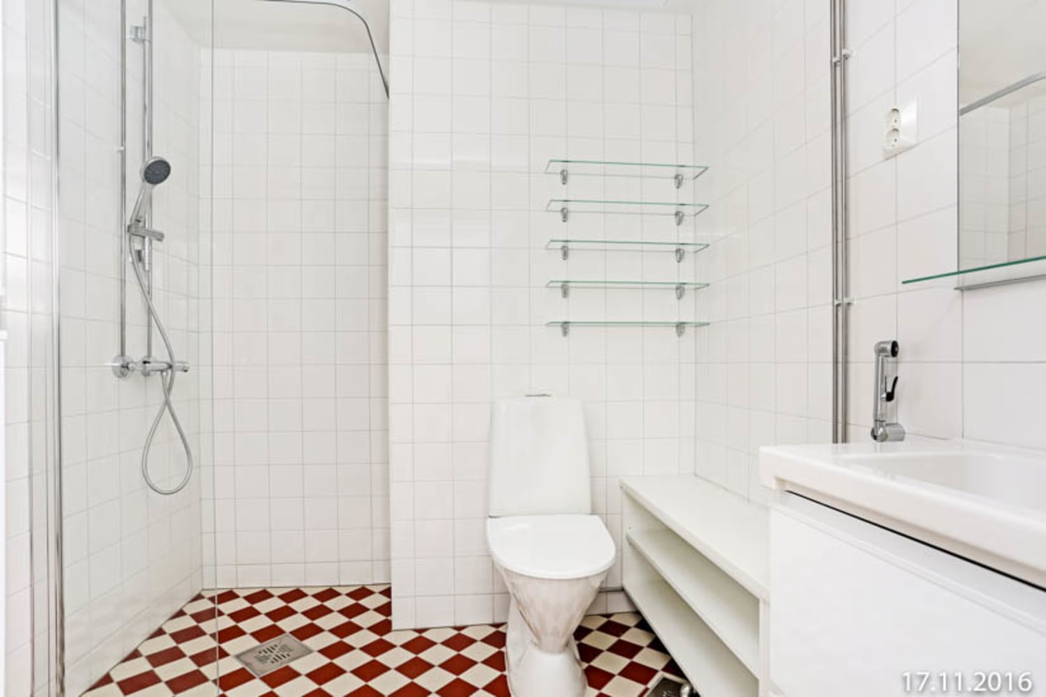 Talon päädyssä olevan kolmion keittiö ja olohuone yhdistyvät viihtyisäksi oleskelutilaksi, johon tulvii valoa kahdesta suunnasta. Ruokailutila sopii mukavasti ikkunan alle. Olohuoneesta makuuhuoneeseen on kaksi kulkutietä näppärästi kummallakin puolella sänkyä. Parveke on talon päädyn puolella. Asuintilojen lattiat ovat saarnen sävyistä laminaattia. Keittiön kaapistojen ovet ovat raikkaan valkoiset ja ylä- ja alakaappien välisessä tilassa on valkoinen verhoilulevy. Työtaso on tummaa laminaattia. Varustukseen kuuluu keraaminen liesi, astianpesukone, jääkaappipakastin sekä varaus mikroaaltouunille. Kokonaan laatoitettujen kylpyhuoneiden seinät ovat kiiltävän valkoiset ja lattioissa on punavalkoinen shakkiruutukuvioinen laatoitus. Pesukoneelle on tilavaraus.