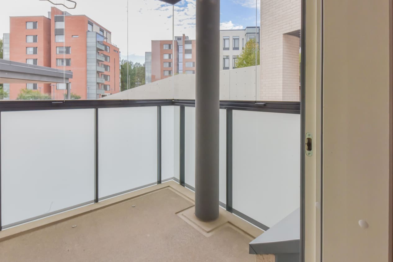 Yksiölle ylellisesti tähän pikkukotiin tulvii valoa peräti kolmesta ilmansuunnasta. Napakka pohjaratkaisu jäsentyy yllättävän helposti sisustettavaksi ja suojaisalta parvekkeelta avautuu näkymä pihan puolelle.