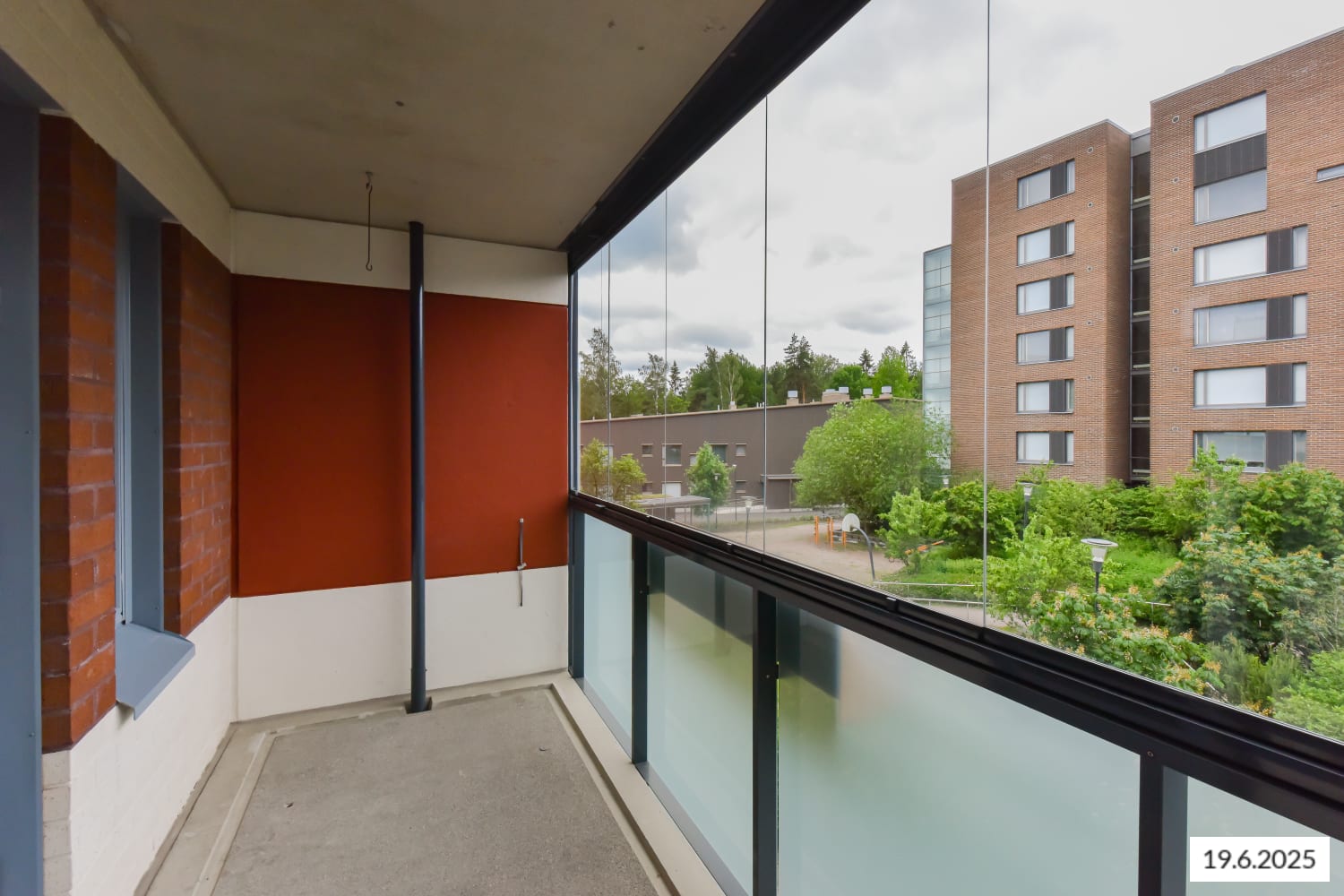 Väljässä yksiössä on reilun kokoinen parveke, jolla kelpaa nauttia ilta-auringon säteistä ja avarasta pihamaisemasta. Asuinhuoneen pohjaratkaisussa ei ole turhia kikkailtu ja sisustuksella saa vaikutettua paljon kodin tunnelmaan.
