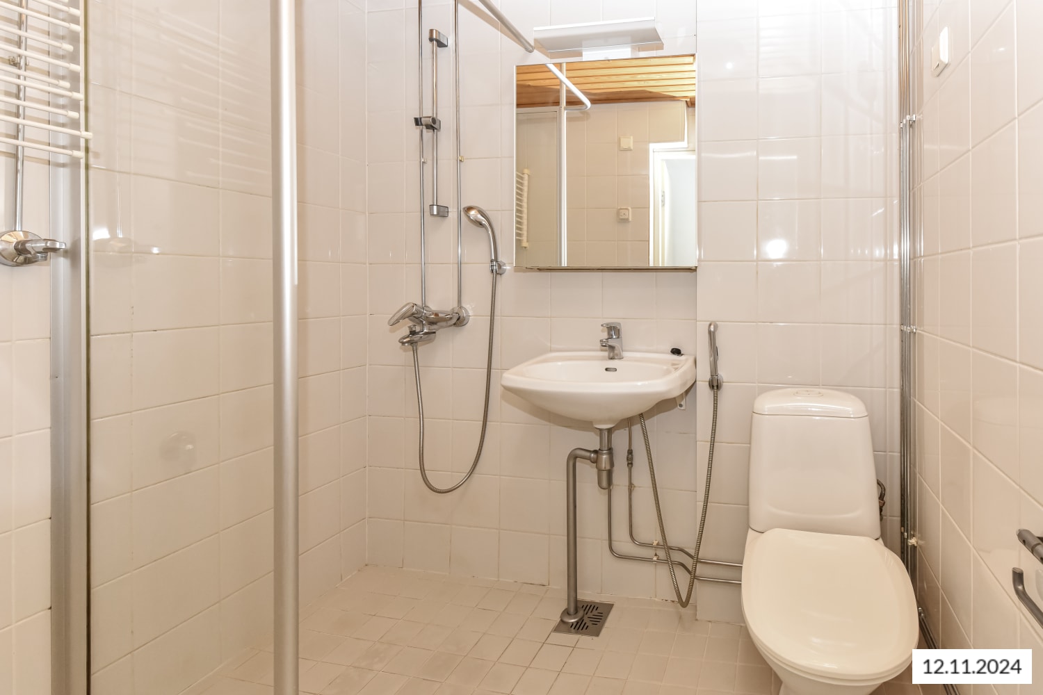 Asuinhuoneissa on laminaattilattiat ja kylpyhuone on kauttaaltaan kaakeloitu.
