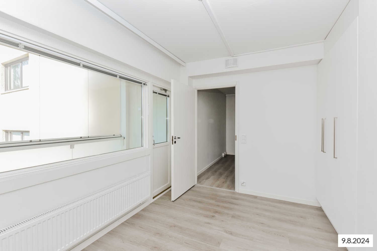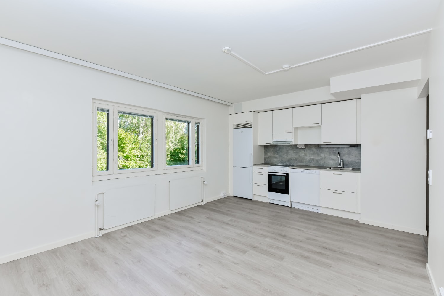 2021 peruskorjauksesta valmistuneen selkeälinjaisen kaksion keittiö ja olohuone yhdistyvät selkeäksi oleskelutilaksi, jonka sisustat helposti oman näköiseksi. Lattia on vaaleaa tammilaminaattia ja seinät on maalattu valkoisiksi. Makuuhuoneesta pääsee ilta-aurinkoon suuntautuvalle lasitetulle parvekkeelle.