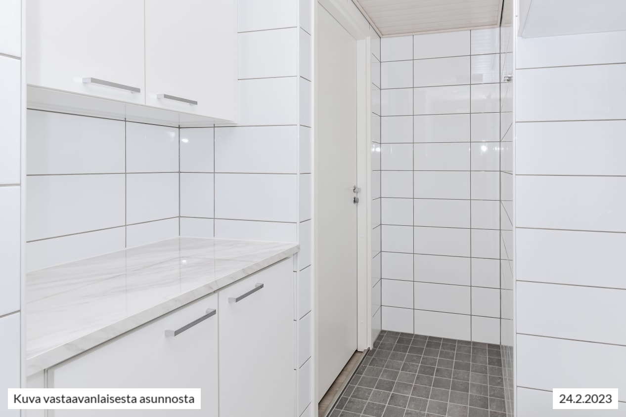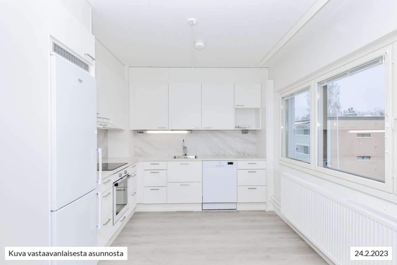 Neliössä on toimiva pohja: reilun kokoinen olohuone, siitä hieman erillään oleva keittiö, tilava päämakuuhuone ja kaksi pienempää makuuhuonetta. Kodikkaassa asunnossa on ikkunoita peräti neljään eri ilmansuuntaan. Auringonlaskua voit ihailla omalta, lasitetulta parvekkeeltasi. Näppärä keittiö on sopivasti hieman erillään olohuoneesta ja siellä on tilaa pienelle ruokapöydälle. Kodissa on mukavasti säilytystilaa niin makuuhuoneissa kuin eteis- ja käytävätiloissa. Täysin uusitussa pääkylpyhuoneessa on kaikki tarpeellinen ja tilavaraus pyykkikoneellesi. Arjen toimivuutta lisää toinen wc.
