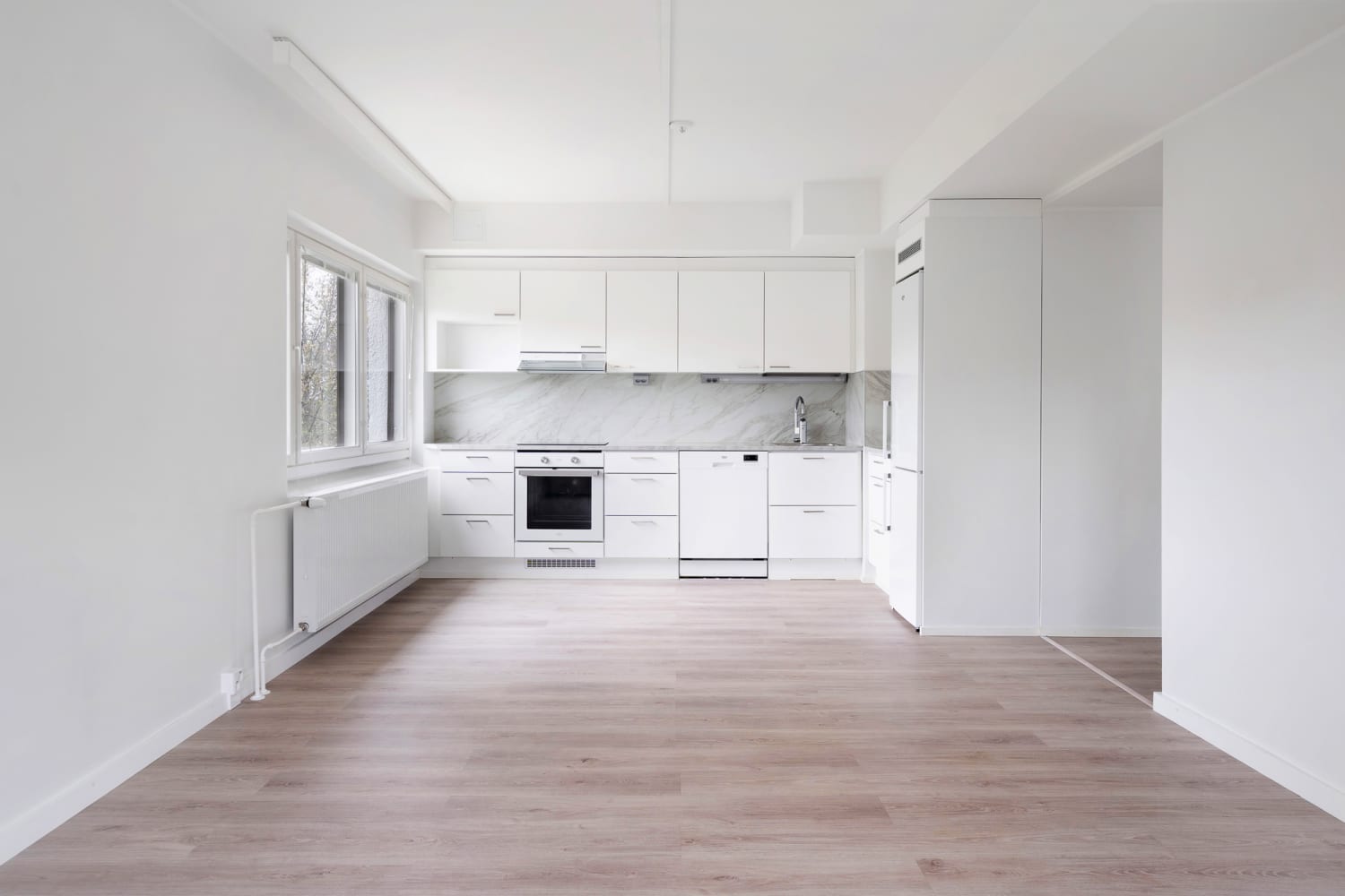 Ihastu asunnon vaaleaan, ajattomaan yleisilmeeseen ja sisusta tästä oma persoonallinen vuokrakotisi!