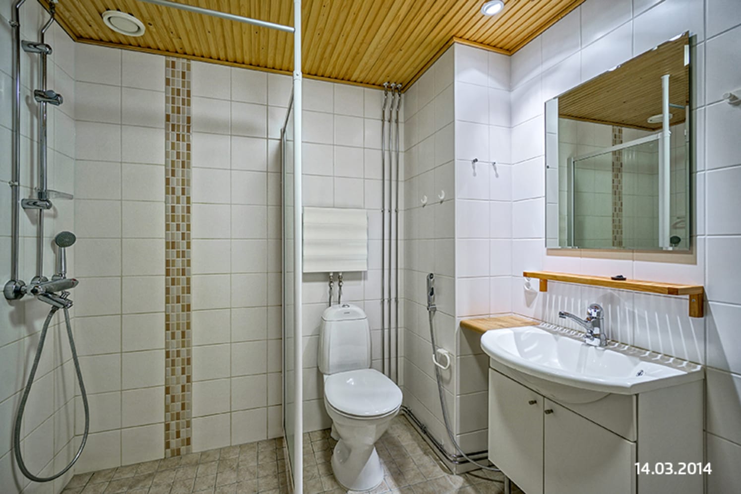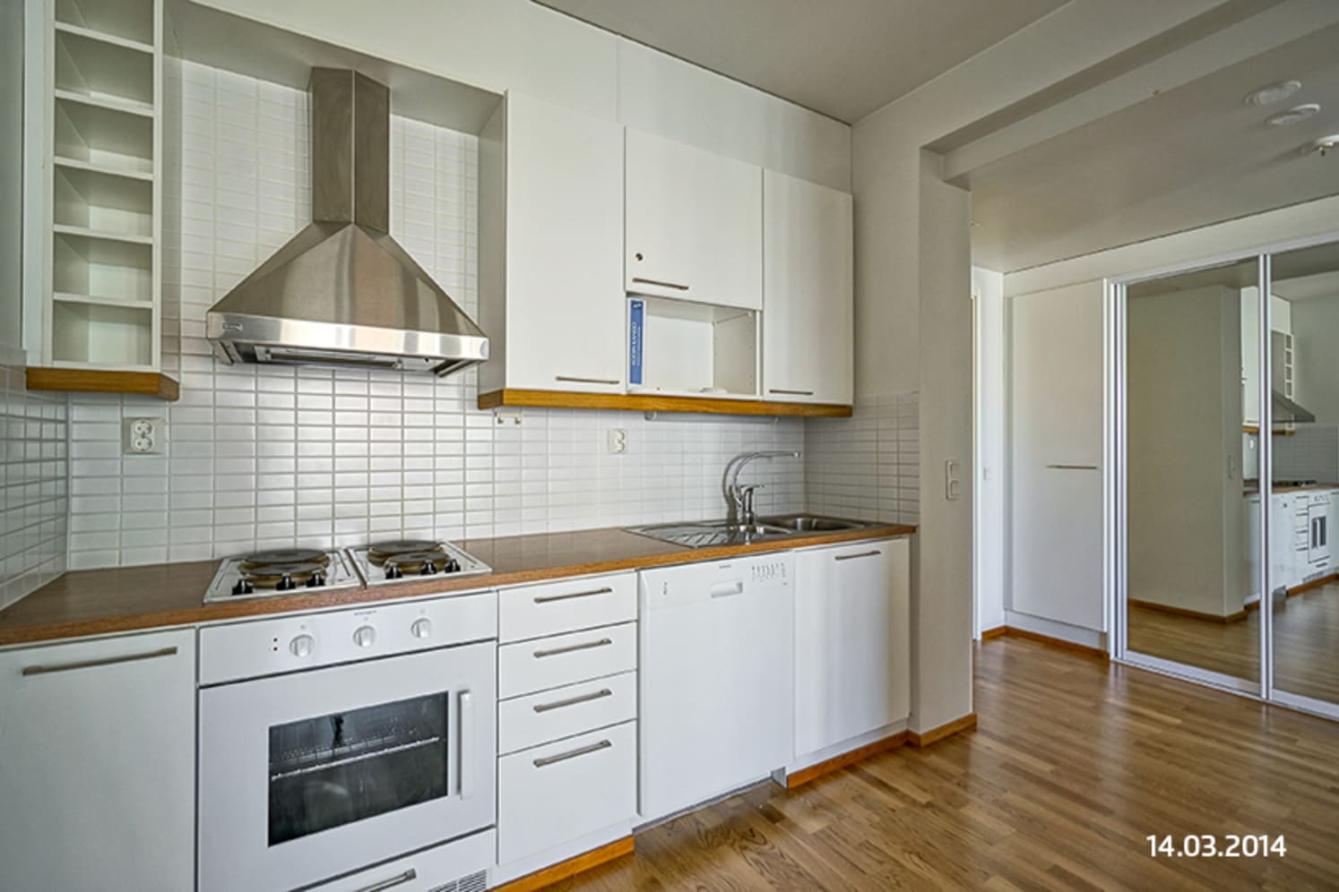 Asuinhuoneissa on kaunis laminaattilattia ja laatoitettu kylpyhuone. Keittokomerossa on jää-pakastinkaappi sekä vakiovarustuksena astianpesukone. Siisti keittiö, asunnossa paljon säilytystilaa.