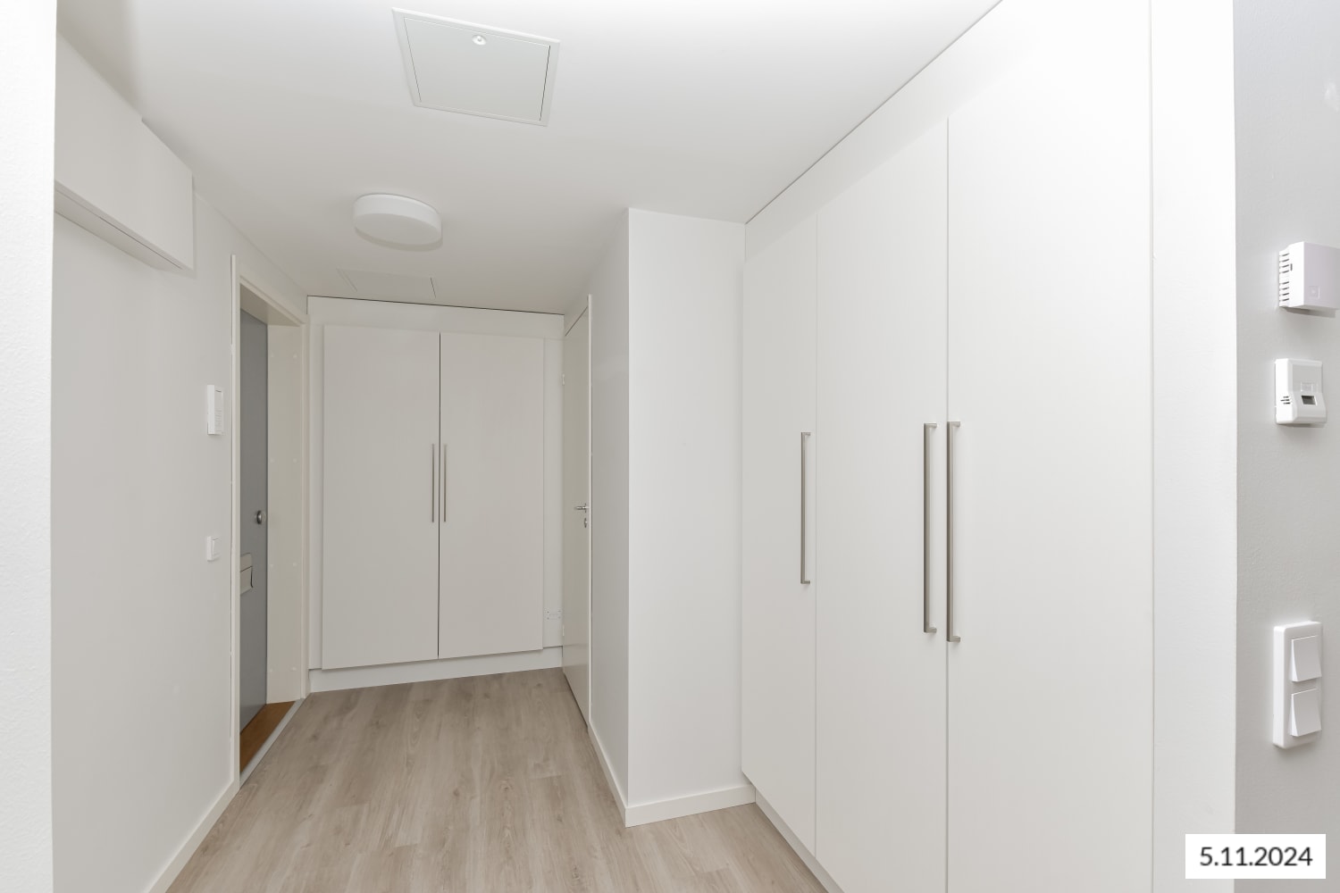 Elokuun alussa peruskorjauksesta valmistuvan selkeälinjaisen kaksion keittiö ja olohuone muodostavat toimivan ja nykyaikaisen kokonaisuuden, jonka sisustat helposti mieluisaksi. Kodin pintamateriaalit ovat vaaleita ja pelkistetyn yksinkertaisia. Lattia ovat vaaleaa tammilaminaattia ja seinät on maalattu valkoisiksi. Linjakkaan avokeittiön kaapistot ovat valkoiset. Ylä- ja alakaappien välinen tila ja työtaso ovat harmaata laminaattia. Varustukseen kuuluu keraaminen liesi, liesikupu, jääkaappipakastin ja astianpesukone. Kodinkoneet ovat valkoisia. Kylpyhuoneessa on valkoiset SATOn Kide-malliston kalusteet ja paikka pyykinpesukoneelle. Seinät ovat valkoista laattaa ja lattia on harmaa. Tilavassa eteisessä on tavallista runsaammin komerotilaa.