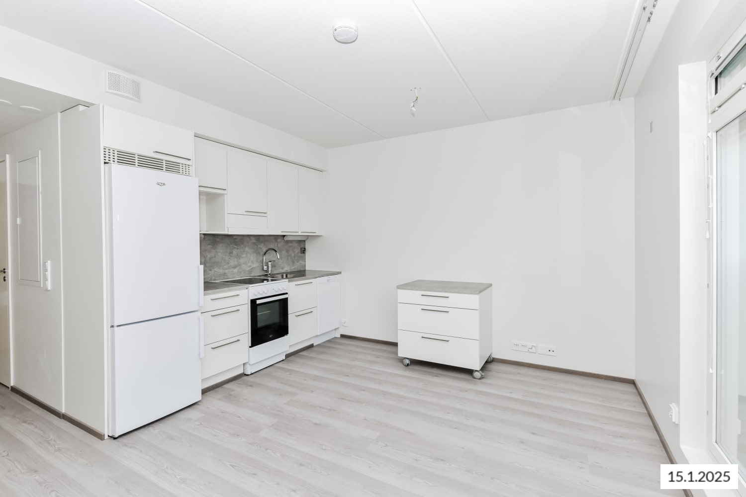 Ihan uusi yksiö viehättää avoimella selkeydellään, johon valoa ja ilmavuutta tuo ranskalainen parveke. Kodin lattia on vaaleaa tammilaminaattia ja seinät on maalattu valkoisiksi. Ikkunassa on sälekaihtimet valmiina. Keittiöissä on valkoiset kaapistot ja erikoisuutena liikuteltavissa oleva saareke, jonka voit sijoittaa juuri omaan sisustukseesi sopivaan kohtaan. Ylä- ja alakaappien välinen tila ja työtaso ovat harmaata laminaattia. Varustukseen kuuluu astianpesukone, keraaminen liesi ja jääkaappipakastin. Kylpyhuoneessa on valkoiset SATOn Kide-malliston kalusteet. Seinät ovat isoa valkoista laattaa ja lattia on harmaa. Pesukoneelle ja kuivausrummulle on paikka ja seinällä on valmiina kokoontaittuva pyykkiteline. Eteisen kaapistossa on peililiukuovet.