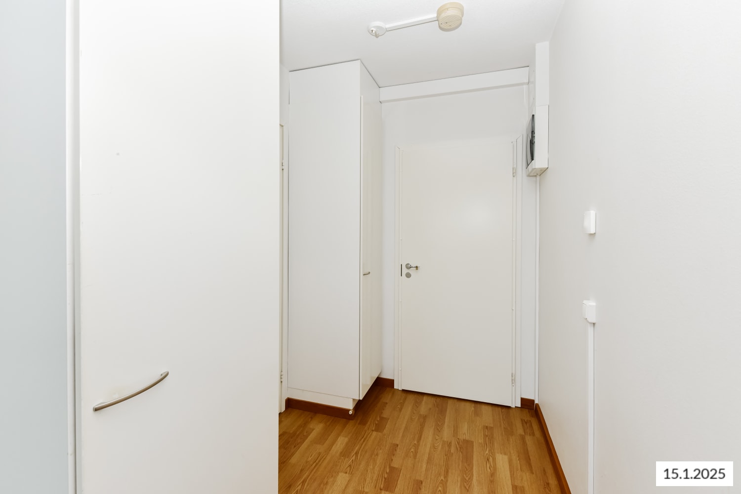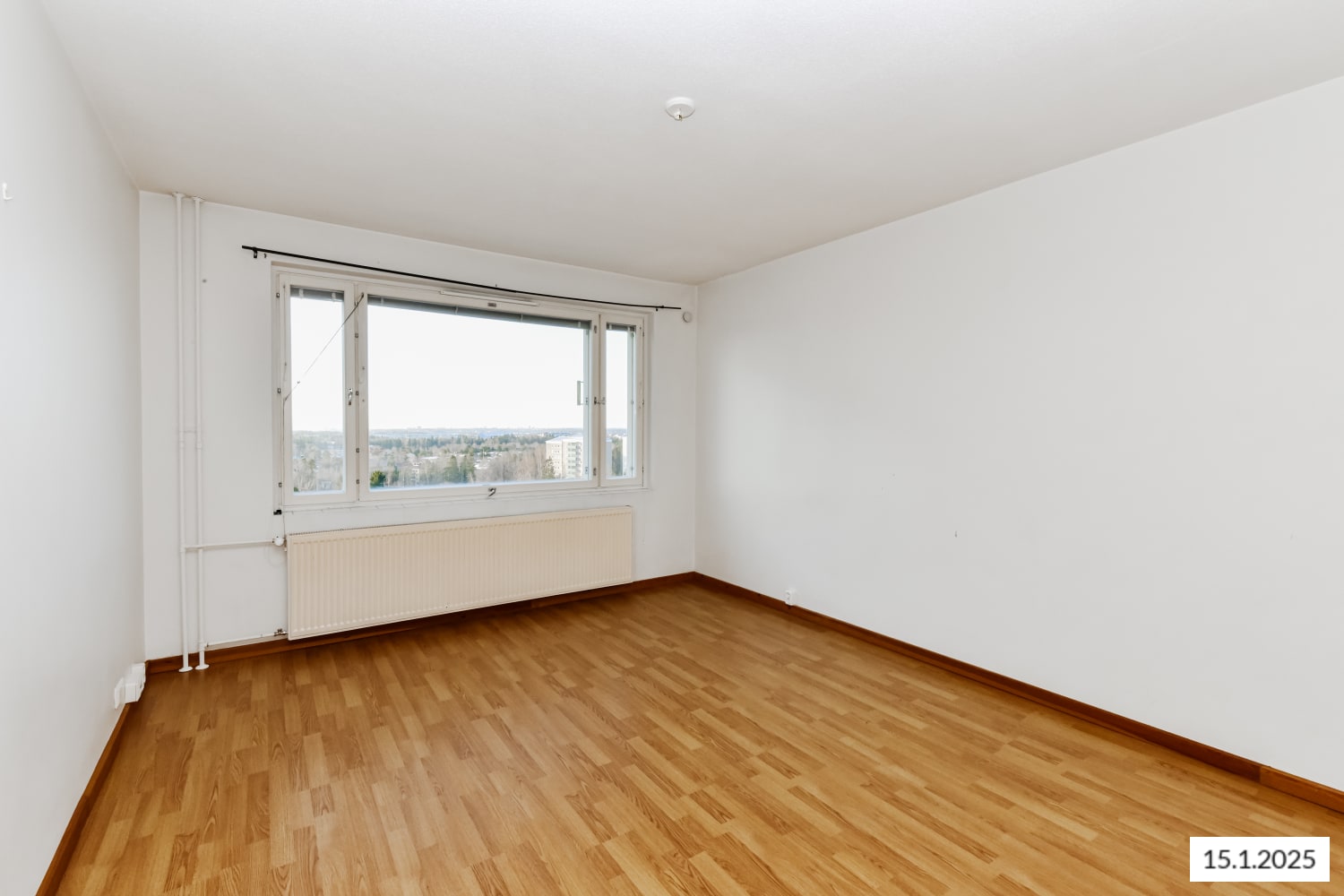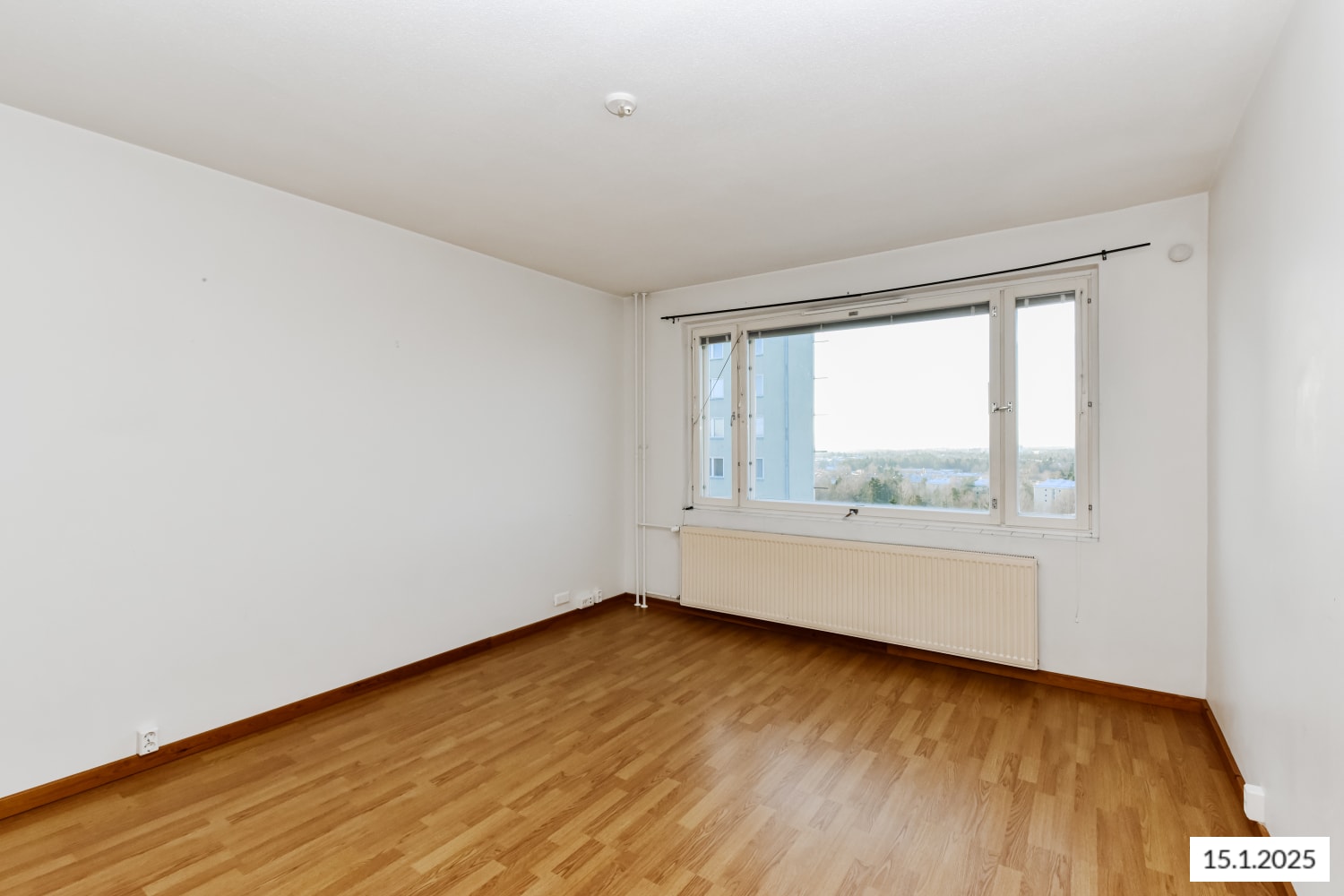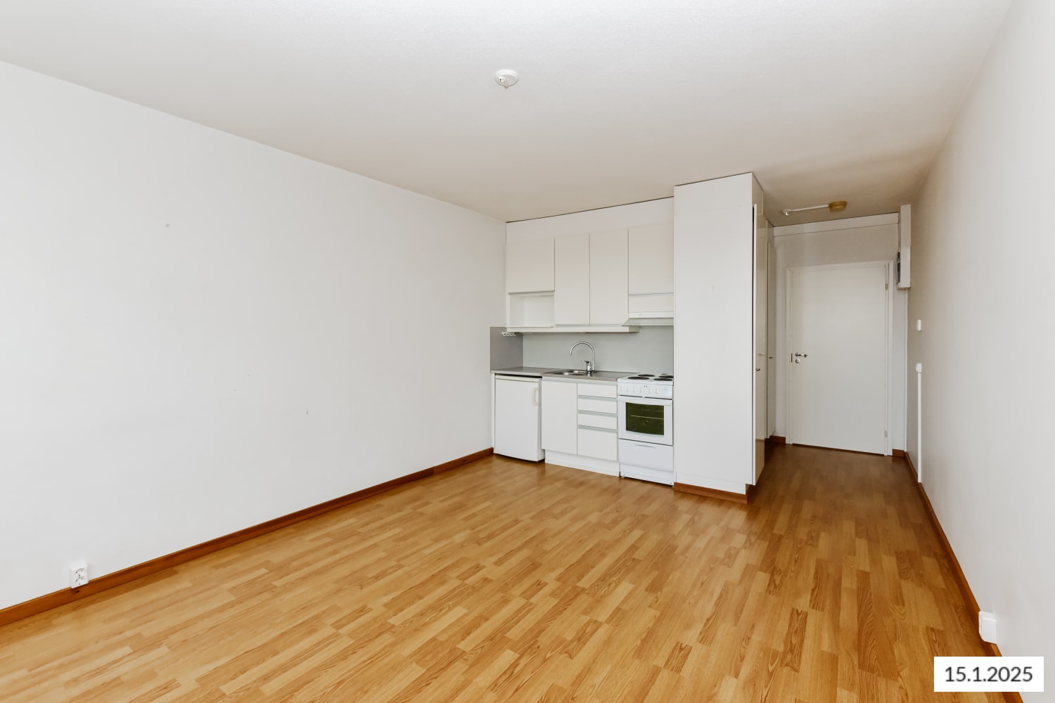 Sympaattinen pikkuyksiö viehättää valoisuudellaan. Asunnon vaaleat pintamateriaalit, valkoiset kalusteet ja iso ikkuna lisäävät tilan tuntua. Ikkunasta avautuu upea näkymä lounaaseen yli Pohjois-Haagan.