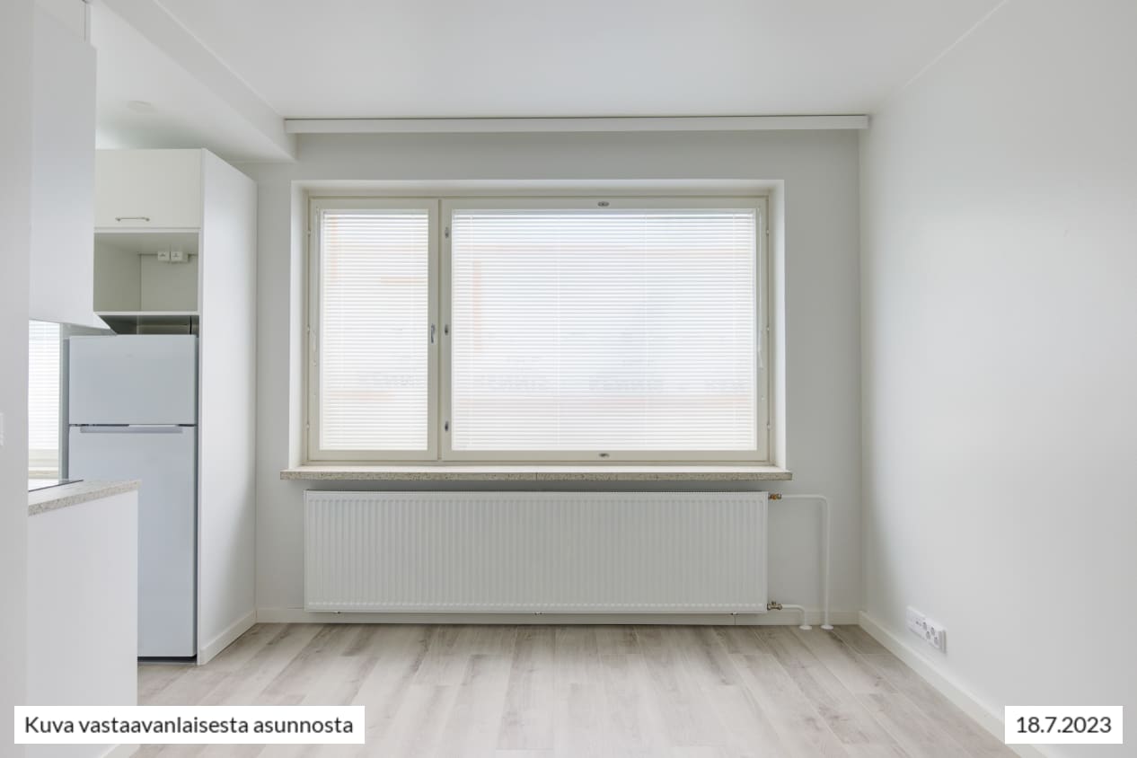 Sisätilojen ilme on rauhallinen ja antaa helposti täydennettävän, neutraalin taustan omalle tyylillesi. Keittiön harmoniset värit jatkavat alkuperäisten kivi-ikkunalautojen väritystä. Kaapistot ovat puukuvioitua valkoista laminaattia, taustalevy vaaleanharmaa ja tasot neutraalin väristä kivijäljitelmälaminaattia. Lattiat asuinhuoneissa ovat vaaleanharmaata tammilaminaattia. Täysin remontoidussa, raikkaassa kylpytilassa voi suihkutella huoletta: seinillä on perinteikkäät valkoiset 15 x 15 cm laatat ja lattiat on laatoitettu pienemmällä, vaaleanharmaalla laatalla. Märkätilojen ajattomilla, kotimaisilla Kide-kylpyhuonekalusteilla on 25 vuoden kestävyystakuu. Polkupyörille ja lastenvaunuille on maan tasalla sijaitsevat varastonsa, joista pääsee suoraan ulos. Taloyhtiöllä on myös kerhotila. Huoneistovarastot ovat talon alimmassa kerroksessa, lämpimissä tiloissa. Kohde lämpenee kaukolämmöllä ja lukitus on toteutettu iLOQ-järjestelmällä. Vuokralle tarjolla on myös noin 60 autopaikkaa, sähköistettyjä latauspaikkoja 4.