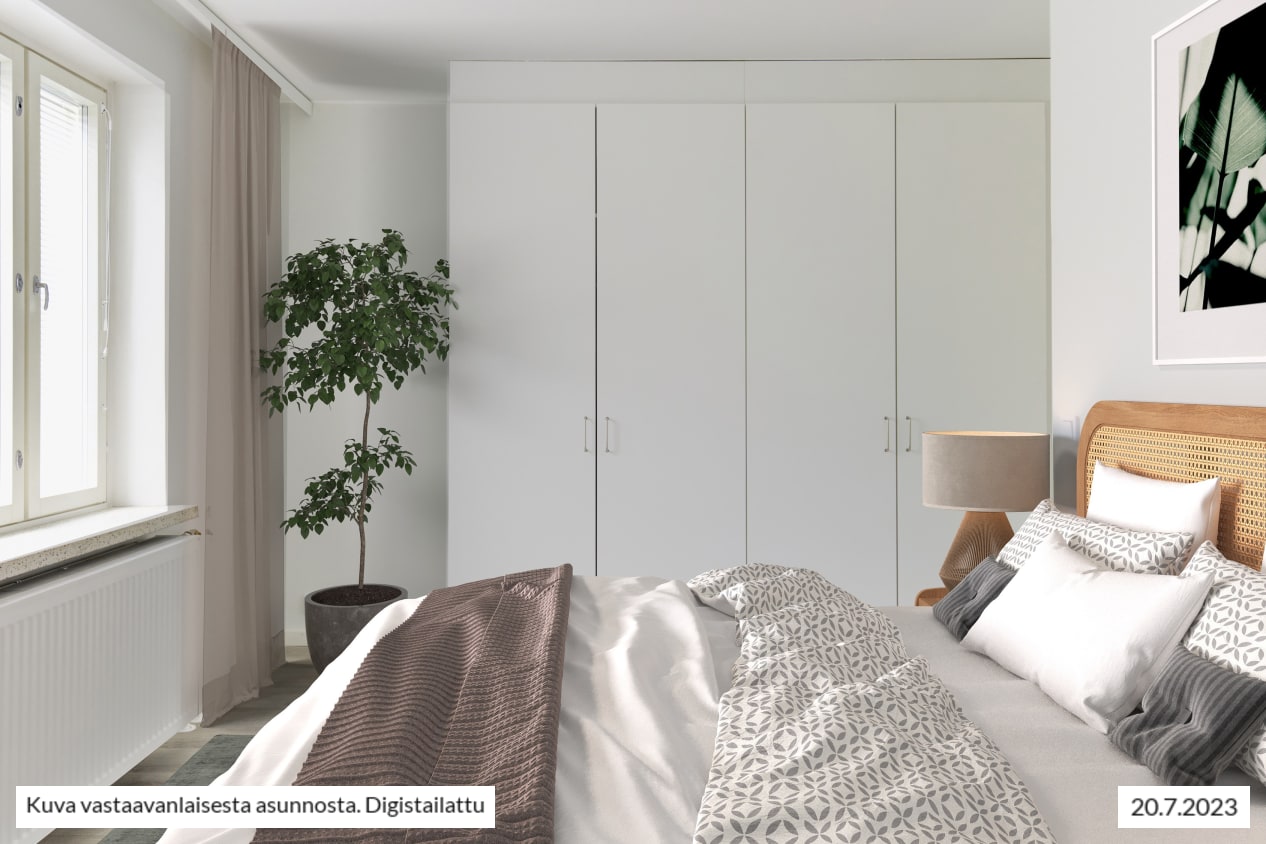 Sisätilojen ilme on rauhallinen ja antaa helposti täydennettävän, neutraalin taustan omalle tyylillesi. Keittiön harmoniset värit jatkavat alkuperäisten kivi-ikkunalautojen väritystä. Kaapistot ovat puukuvioitua valkoista laminaattia, taustalevy vaaleanharmaa ja tasot neutraalin väristä kivijäljitelmälaminaattia. Lattiat asuinhuoneissa ovat vaaleanharmaata tammilaminaattia. Täysin remontoidussa, raikkaassa kylpytilassa voi suihkutella huoletta: seinillä on perinteikkäät valkoiset 15 x 15 cm laatat ja lattiat on laatoitettu pienemmällä, vaaleanharmaalla laatalla. Märkätilojen ajattomilla, kotimaisilla Kide-kylpyhuonekalusteilla on 25 vuoden kestävyystakuu. Polkupyörille ja lastenvaunuille on maan tasalla sijaitsevat varastonsa, joista pääsee suoraan ulos. Taloyhtiöllä on myös kerhotila. Huoneistovarastot ovat talon alimmassa kerroksessa, lämpimissä tiloissa. Kohde lämpenee kaukolämmöllä ja lukitus on toteutettu iLOQ-järjestelmällä. Vuokralle tarjolla on myös noin 60 autopaikkaa, sähköistettyjä latauspaikkoja 4.