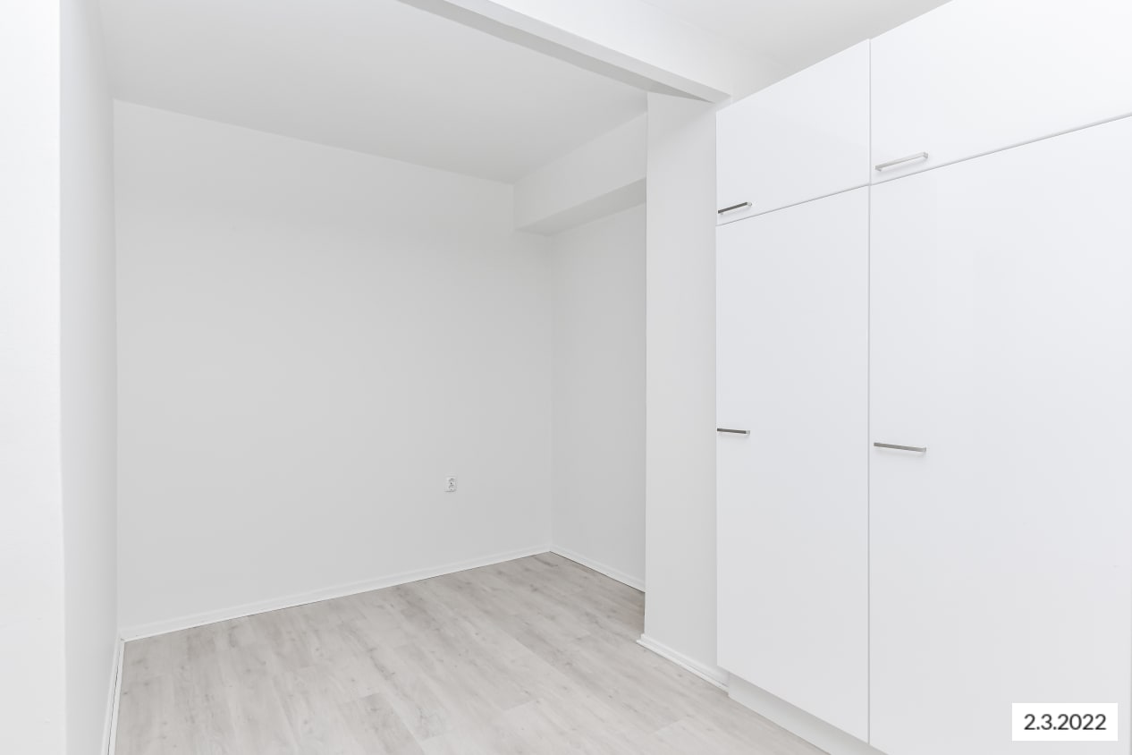 Valoisan ja tilavan olohuoneen jatkona on syvennetty alkovi. Asuinhuoneiden lattiamateriaalina on kauniin vaalean sävyinen laminaatti ja kylpyhuone on kauttaaltaan kaakeloitu. Asunnon ikkunat avautuvat etelään ja pohjoiseen - asuinhuoneesta avautuva korttelipihanäkymä on kuin postikortista.
