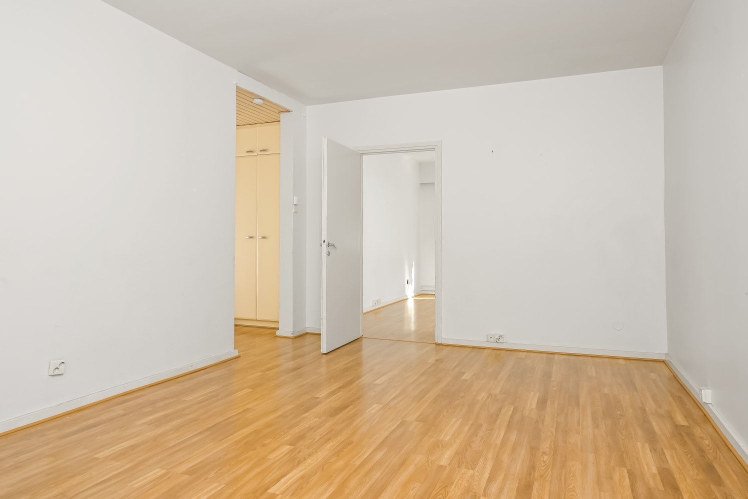 Asunnon pinnat ovat siistit ja ajattomat, tarjoten lämpimän ja neutraalin pohjan mille tahansa sisustustyylille. Lattiat ovat puun väristä laminaattia.