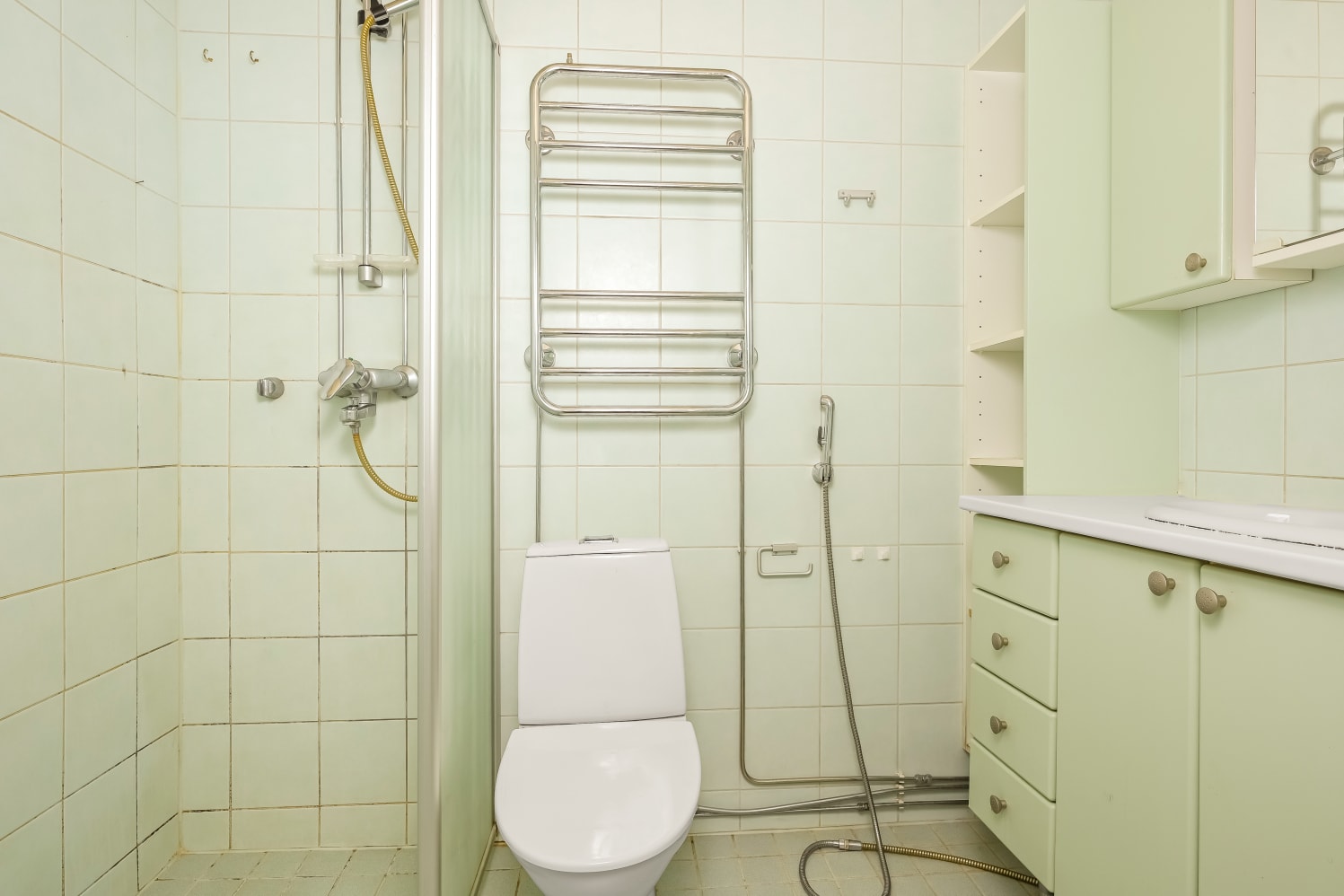 Olotilaa voi laajentaa kesäisin parvekkeelle, jonne voit asettua esimerkiksi kahvikupin kera. Kylpyhuoneessa on tilavaraus pyykinpesukoneelle. Olisiko tämä sinun uusi vuokrakotisi?