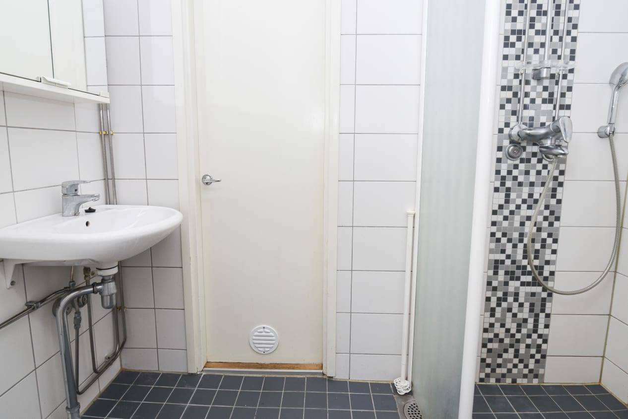Keittiössä on tilaa ruokapöydälle ja astianpesukone helpottaa arkea. Laatoitetussa kylpyhuoneessa on tilavaraus pesukoneelle ja erillinen pikku-wc tuo sujuvuutta arkeen.