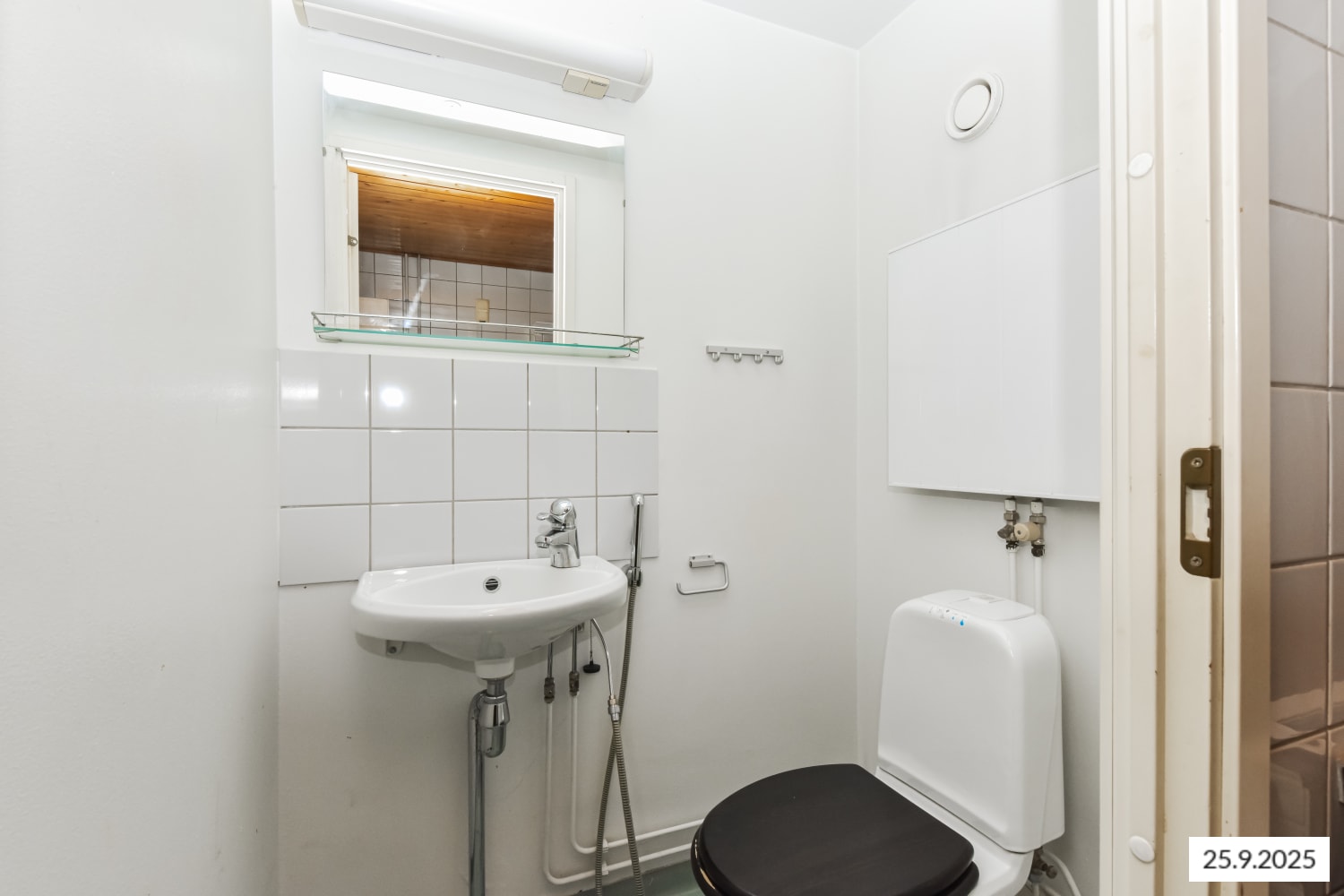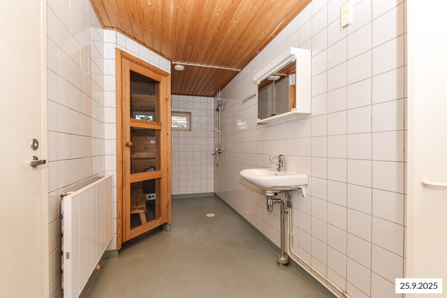 Laatoitetussa kylpyhuoneessa on tilavaraus sekä liitännät pyykinpesukoneellesi. Kodin kruunaa oma sauna, jossa on rentouttavaa saunoa päivän päätteeksi omalla aikataululla. Erillinen wc sujuvoittaa arkea. Säilytystilaa löytyy makuuhuoneen ja eteisen kaapeista.