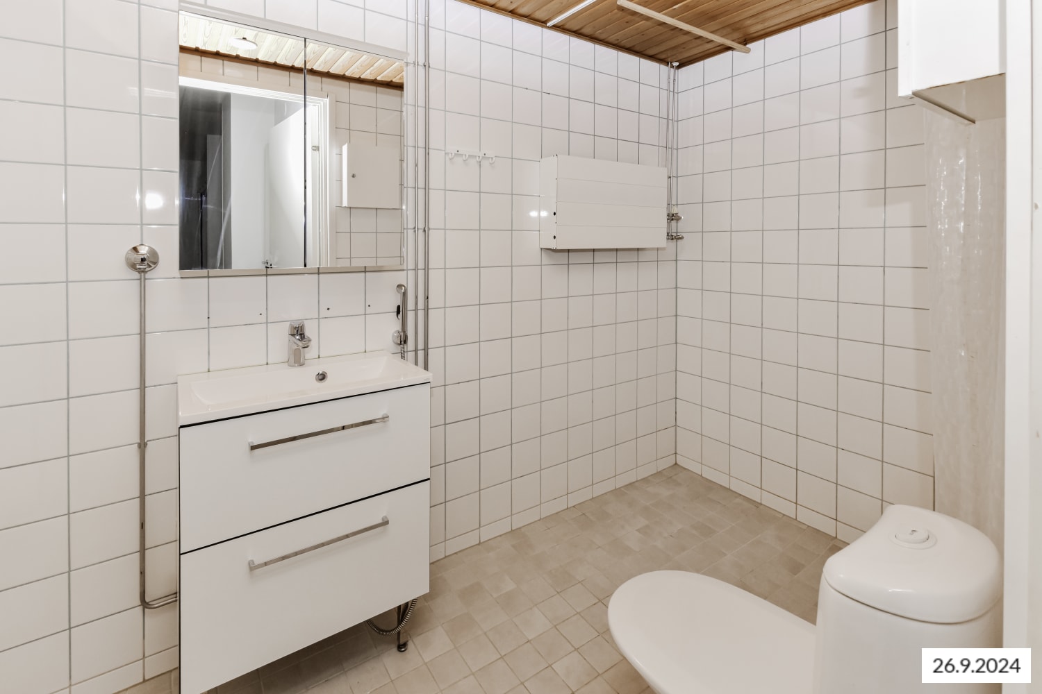 Tilavassa kylpyhuoneessa on tilavaraus pyykinpesukoneelle. Kodissa on myös erillinen wc. Keittiön varustukseen kuuluu astianpesukone, lattiauuni, liesi ja jääkaappipakastin.