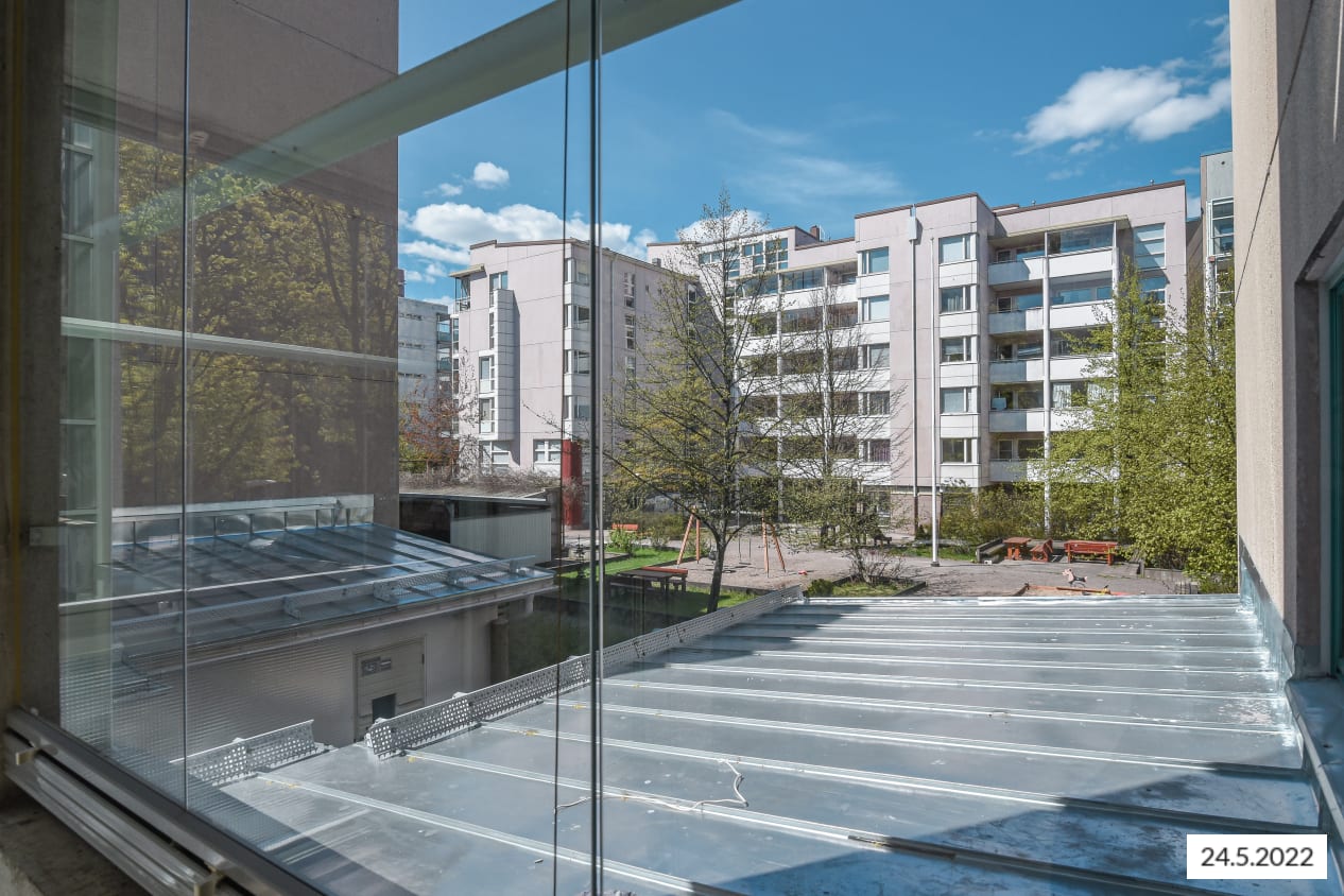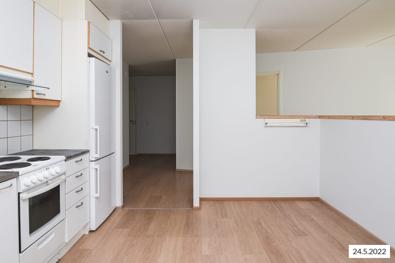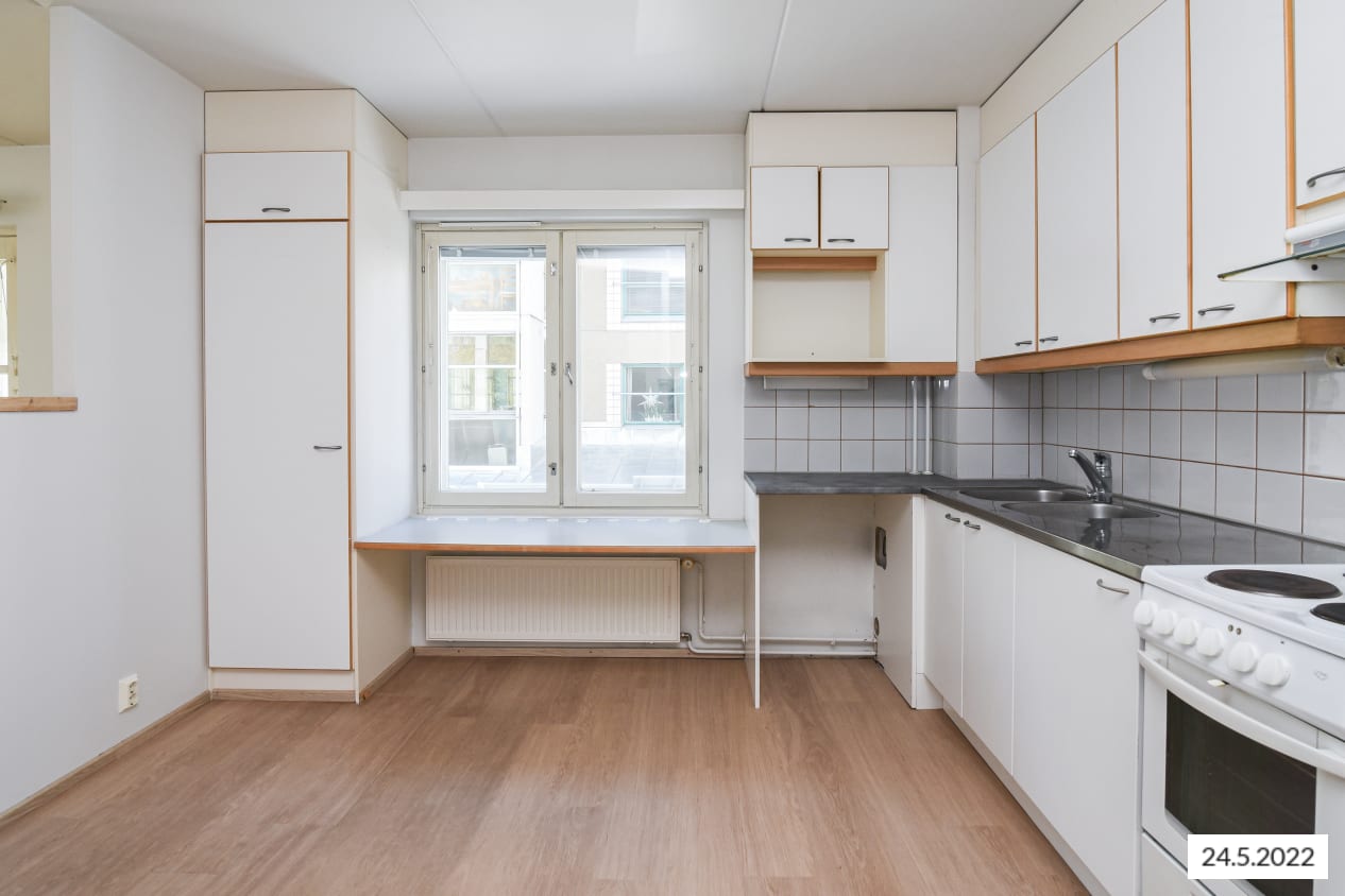 Kivenheiton päässä Ruoholahden kanavasta sijaitsevassa vuokrakolmiossa on persoonallinen pohjaratkaisu: keittiö ja olohuone ovat lähes yhtenäistä tilaa ja niiden välinen seinä on vain hieman yli metrin korkuinen. Lapsiperheen arkiaamuja helpottaa tilava eteinen ja kylpyhuoneesta erotettu wc. Parvekkeelta avautuu etelänäkymä puiden reunustaman Laivapojankadun puolelle.
