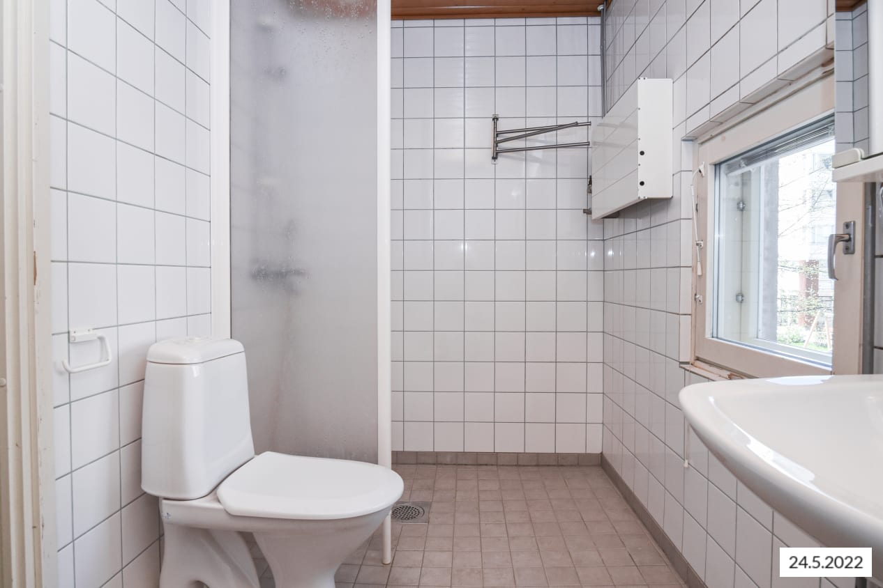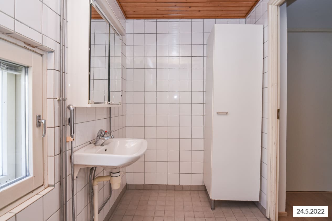 Asuinhuoneiden lattiamateriaalina on laminaatti. Kaakeloidussa kylpyhuoneessa on varaus pesukoneelle. Keittiössä on jää-pakastinkaappi ja nelilevyinen sähköliesi sekä astianpesukonevaraus.