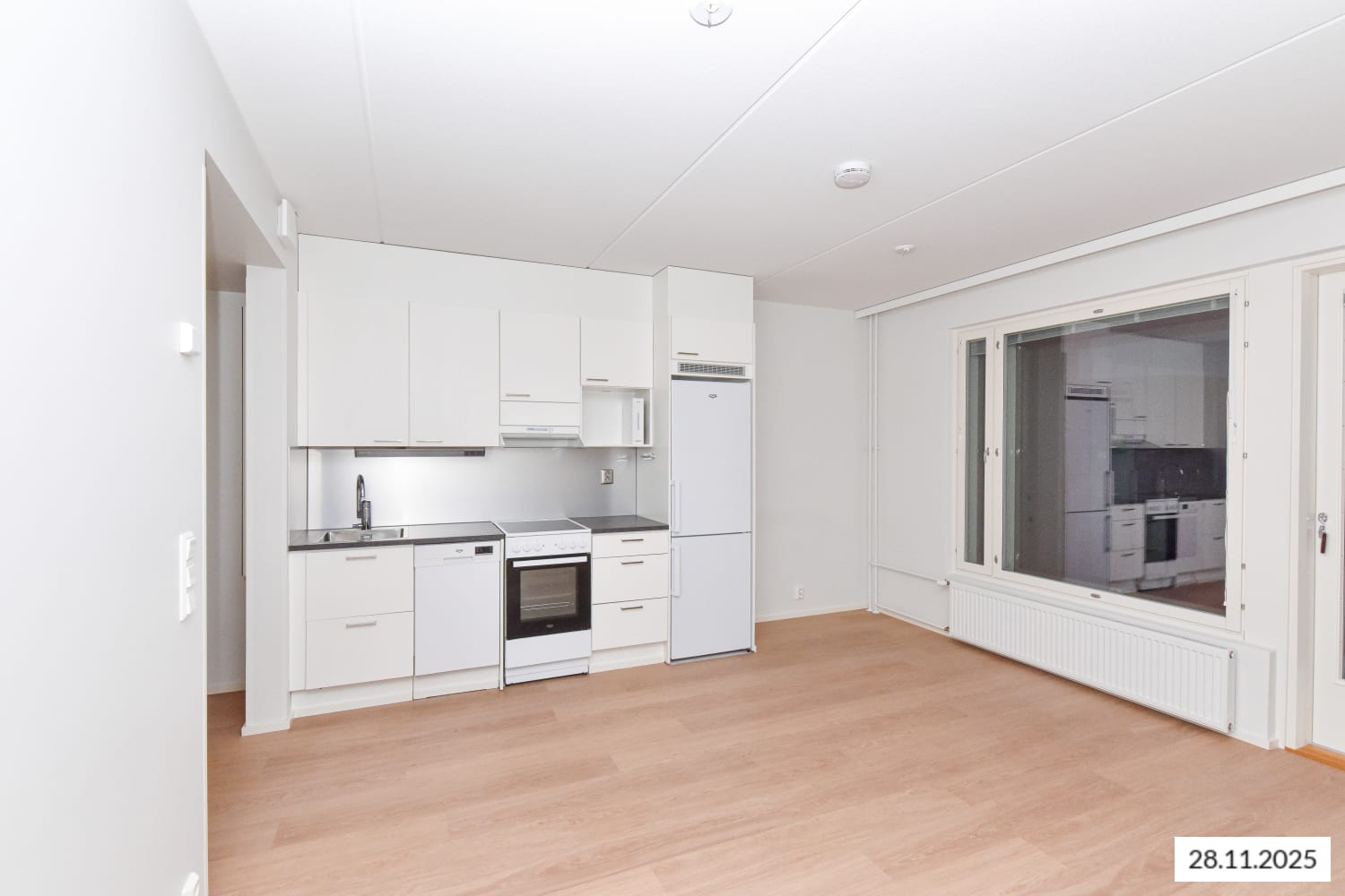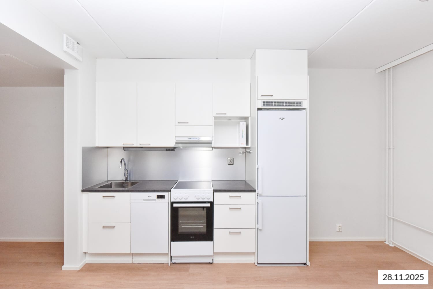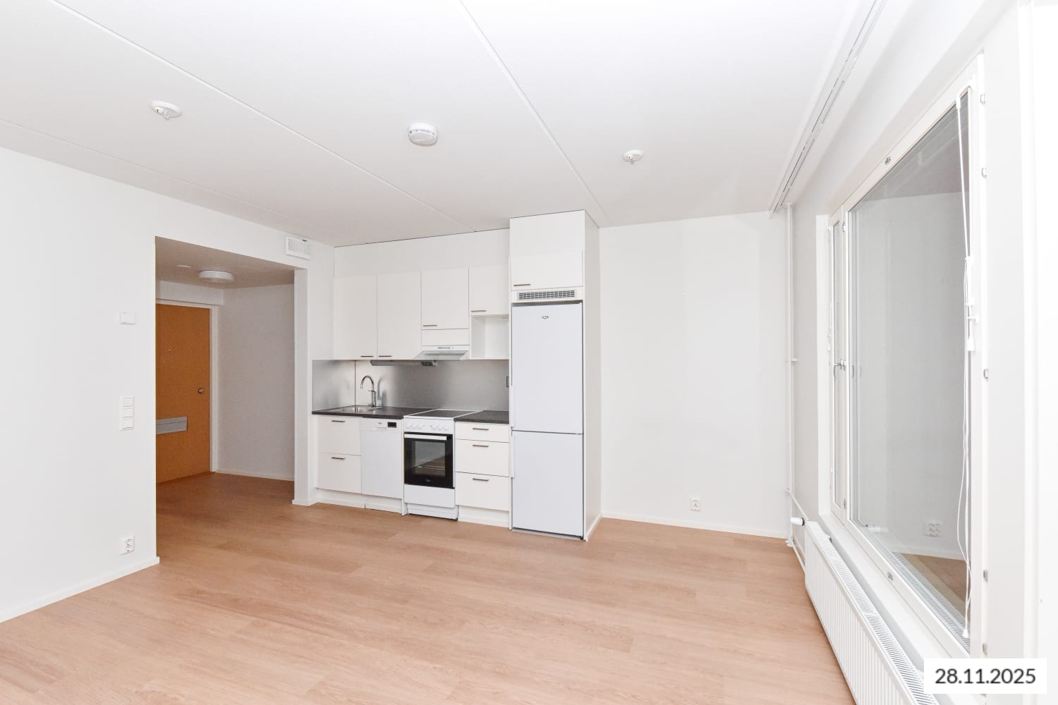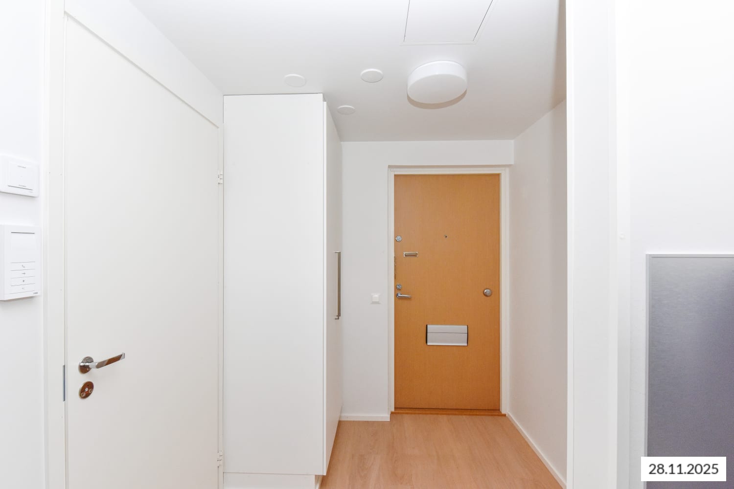 Syksyllä 2021 valmistuneen kaksion keittiö ja olohuone muodostavat yhtenäisen valoisan kokonaisuuden, jonka sisustat helposti omaan makuusi sopivaksi. Makuuhuone on erotettu oleskelutilasta kahdella liukuovella. Koko asunnon levyinen lasitettu parveke aukeaa ilta-aurinkoon Sompasaarenaltaan suuntaan.